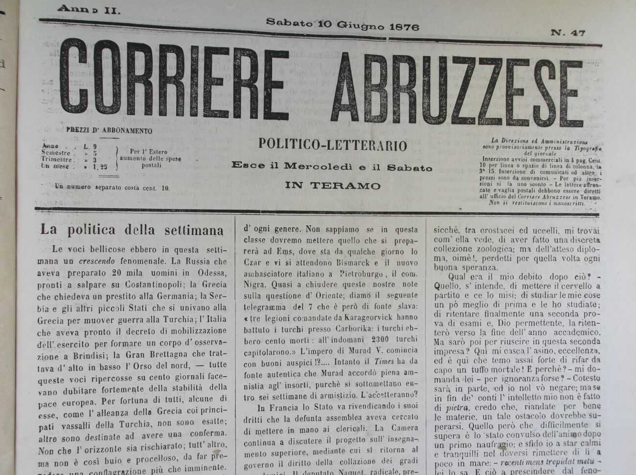 Un numero separato costa ccnt. 10.