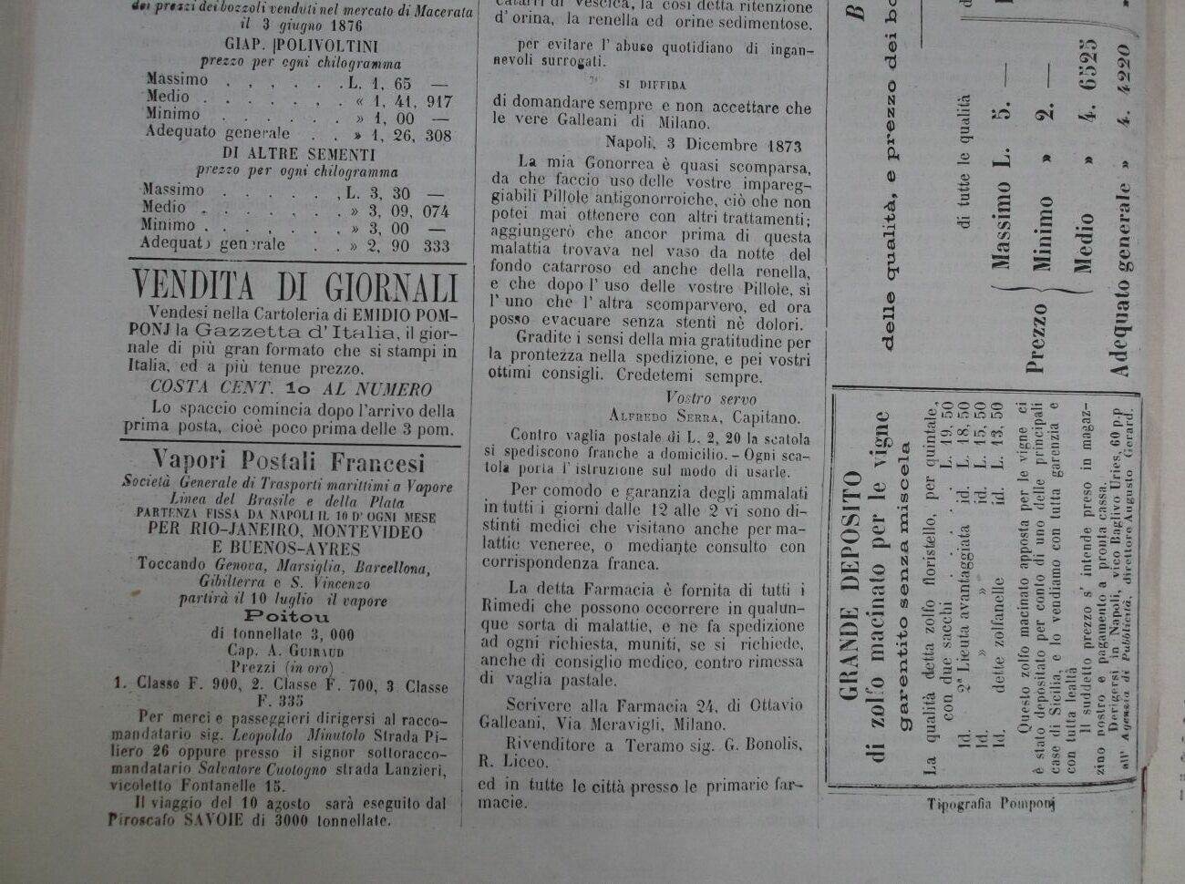 Napoli, 3 Dicembre 1873 H La mia Gonorrea è minsi scorri narsa