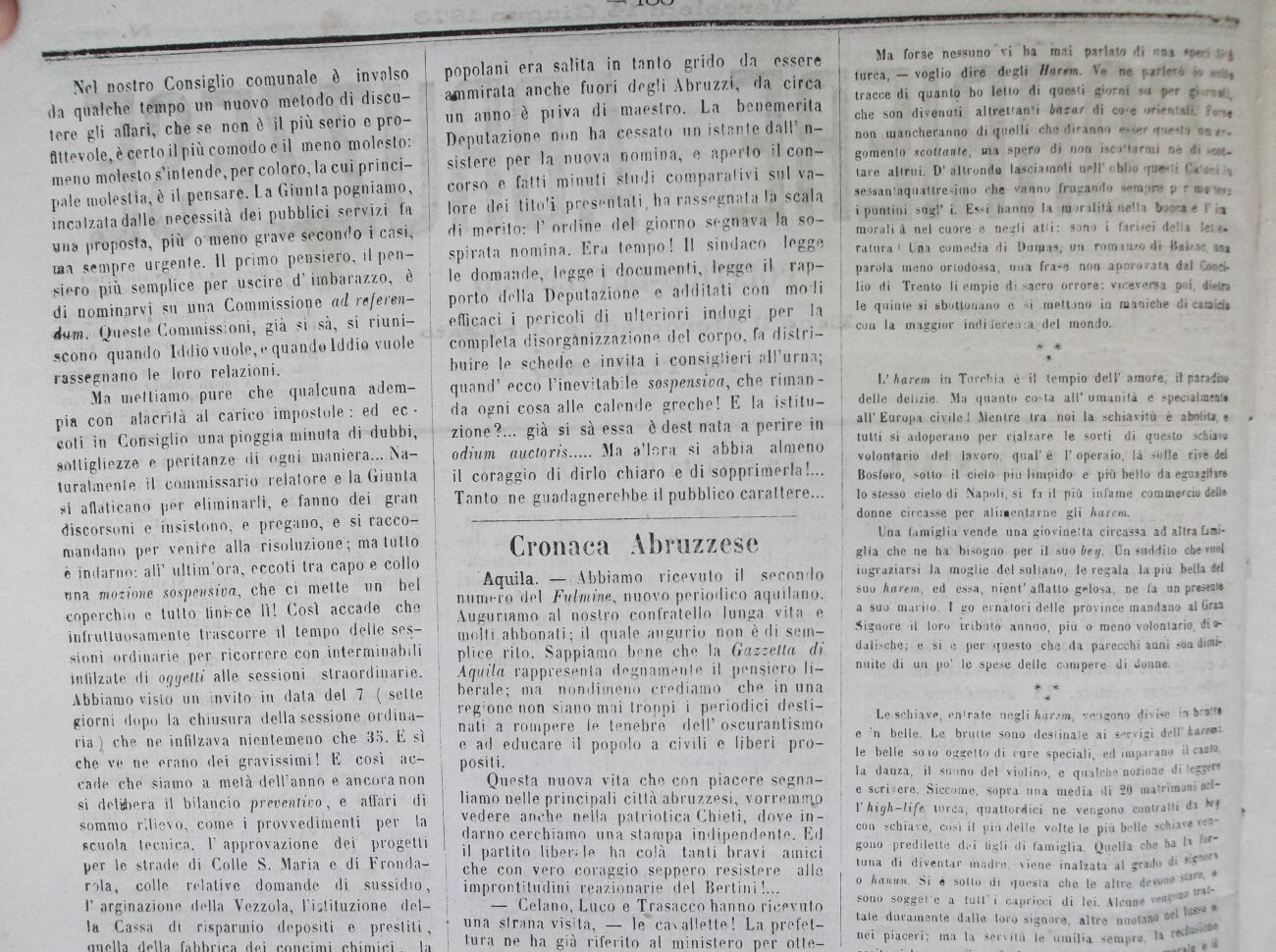 Aquila. Abbiamo ricevuto il secondo numero YJel Fulmine, nuovo periodico aquilano. Auguriamo, al nostro confratello lunga vita e molti abbonati; il quale augurio non è di semplice rito. Sappiamo bene che la Gazzetta di Aquila rappresenta degnamente il pensiero liberale; ma nondimeno crediamo che in una regione non siano mai tròppi i periodici destinati a rompere le tenebre dell1 oscurantismo e ad educare il popolo a civili e liberi propositi.