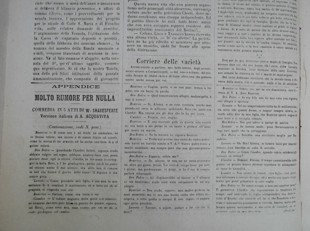 Questa nuova vita che con piacere segnaliamo nelle principali città abruzzesi, vorremn^p vedere anche nella patriotica Chieti, dove indarno cerchiamo una stampa indipendente. Ed il partito liberile ha colà tanti bravi amici che con vero coraggio .seppero resistere alle improntitudini reazionarie del Bertin.it..,