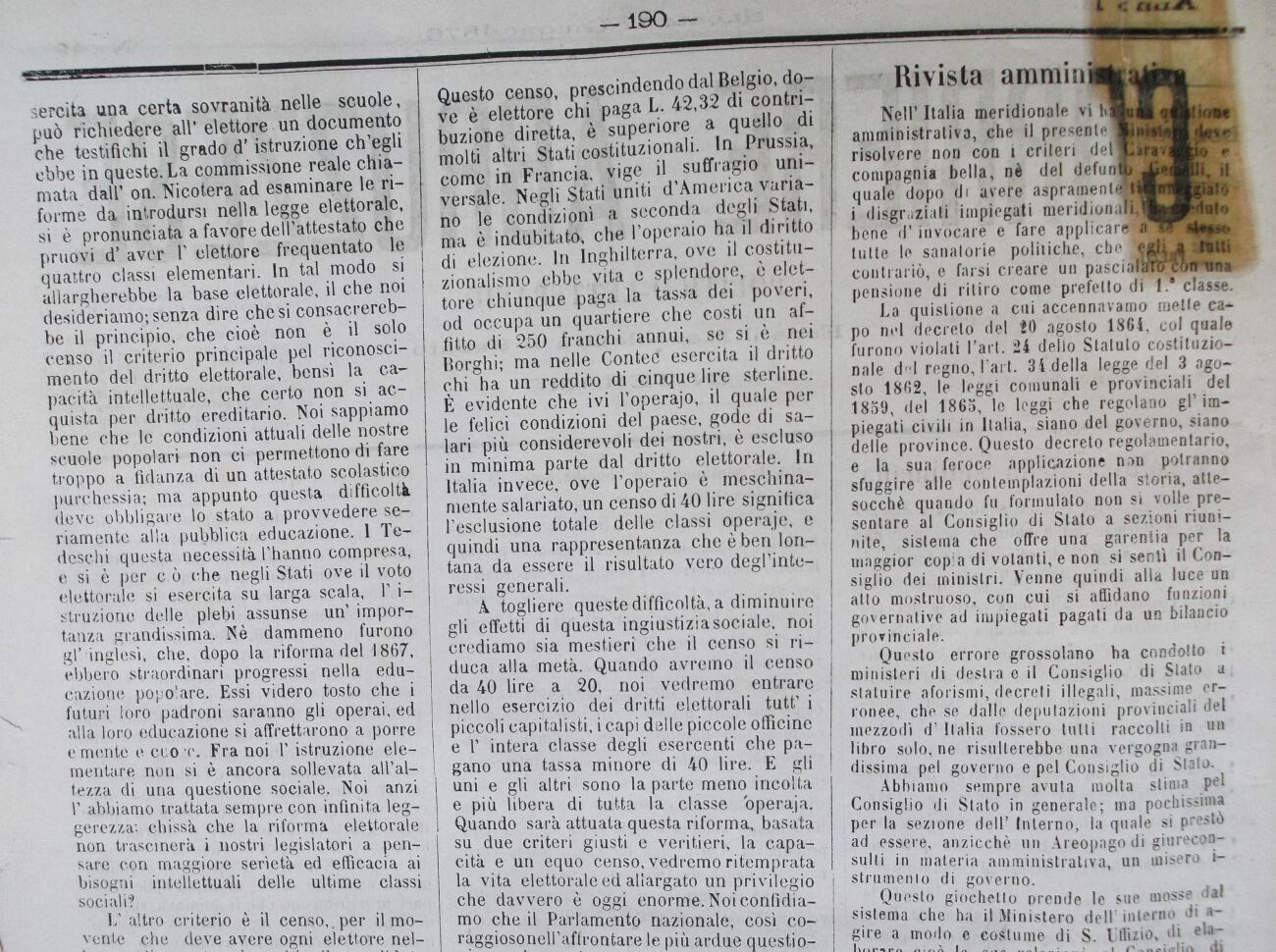 Questo errore grossolano ha condotto i ministeri di destra e il Consiglio di Slato a statuire aforismi, decreti illegali, massime erronee, che se dalle deputazioni provinciali del mezzodì d'Italia fossero tutti raccolti in un libro solo, ne risulterebbe una vergogna grandissima pel governo e pel Consiglio di Stato.