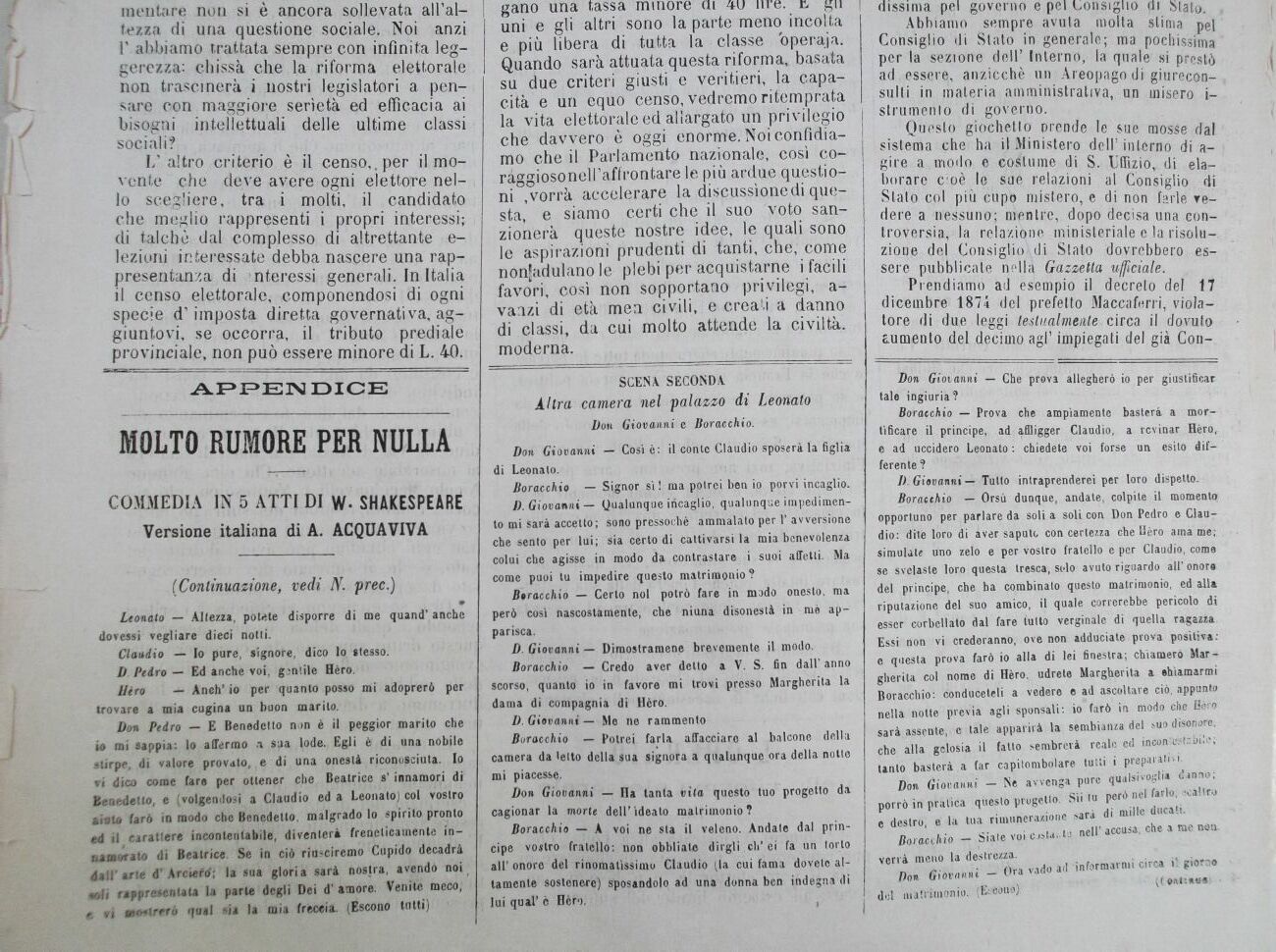 Prendiamo ad esempio il decreto del 17 dicembre 1874 del prefetto Maccaferri, violatore di due leggi testualmente circa il dovuto aumento del decimo agi' impiegati del già Con-