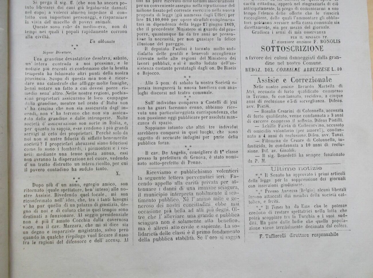 Sull'individuo comparso a Castelli di [cui non ha guari facemmo cenno, abbiamo ricevuta una particolareggiata corrispondenza, che non possiamo oggi pubblicare per assoluta man-canza di spazio.