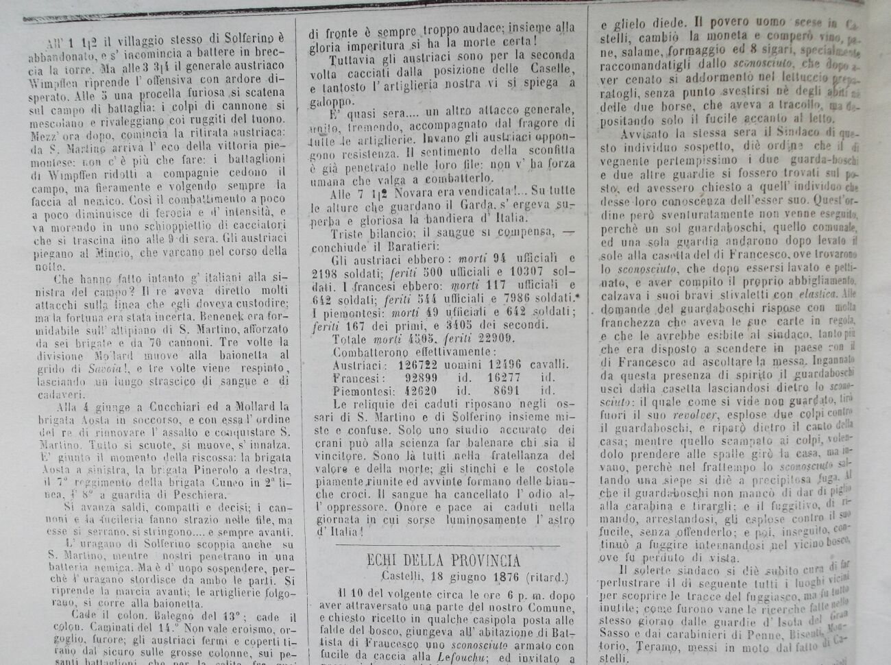 Le reliquie dei caduti riposano negli ossari di S. Martino e di Solferino insieme miste e confuse. Solo uno studio accurato dei prani può alla scienza far -balenare chi .sia U vincitpre. JSo.no Jà tutti .nella fratellanza dei yalpre e della morte; tgli stinchi e le costple piamente,riunite ed avvinte formano delle bianT clie croci. 11 sangue ha cancellato l1 odio al7 r oppressore. Onore e pace ai caduti nella giornata in cui sorse luminosamente I1 astro .d'Italia*' f