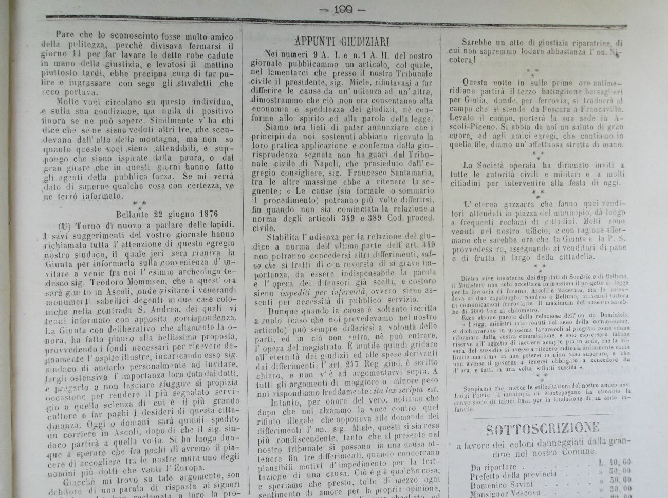 APPUNTI -GIUDIZIARI Noi numeri 0 A. I. e n.t A. II. del nostro giornale pubblicammo un articolo, col quale, nel lamentarci che presso il nostro Tribunale -civile il presidente, sig. Miele, rifiutava^ a far differire le cause da un' udienza ad un' allra, dimostrammo che ciò :non era consentaneo alla economia e speditezza dei giudizii, nè conforme .allo ¦spirito ed atta parola della legge. ;Siamo ara lieti di poter annunziare che i principi i da noi sostenuti abbiano ricevuto la ,lor.o pratica applicazione e.con ferma dalla giù- . risprudenza segnata non ha guari dal Tribunale .civile ,di Napoli, che prasiedulo dall'egregio consigliere, sig. Francesco Santamaria, tra le altre massime ebbe a ritenere la seguente : « Le cause .(sia formale o sommario il procedimento) porranno più volte differirsi, fin .quando non sia cominciatala relazione .a norma de^li articoli 34.9 e 389 God. proced. civile. Stabilita r iid-ienZja per 1a relazione del giudice a norma deìH1 ultima parte dell1 art. 349 non potranno concedersi a Uri differimenti, salvo pi si traili di crn roversia di si grave importanza, da essere indispensabile la parola e V opera dei difensori già scelti, e costoro sieno mpediti per infermità, ovvero sieno assenti per necessità di pubblico servizio. Dunque quando la causa è soltanto iscritta a ruoLo (caso cjhe noi prevedevamo nel nostro articolo) può sempre differirsi a volontà delle parli, ed in ciò non entra, Intapto, per onore del vero, no li amo che dopo .che noi alzando la voce contro quel rifiuto illegale che opponeva alle domande dei differimenti J' on. sig. Miele, questi si sia reso più condiscendente, tanto che al presente nel nostro tribunale si possono in una causa ottenere fin tre differimenti, quando concorrano plausibili motivi d'impedimento per la trattazione di una causa. Giò è già qualche cosa, e speriamo che presto, tolto di mezzo ogni sentimento di amore per la propria opinione, __ Sarebbe un atto di giustizia riparatrice, di' -cui non sapremmo lodare abbastanza l' on. X4-coteraj * * # Questa notte in sulle prime ore antimeridiane partirà il terzo battaglione bersagl eri per Giulia, donde, per ferrovia, si tradurrà al campo che si stende da Pescara a Francavate. Levato il campo, porterà la sua sede in À-scoli-Piceno. Si abbia da noi un saluto di gran cuore, ed agli amici egregi, che contiamo in quelle file, diamo un' affettuosa stretta di mano. * * * La Società operaia ha diramato inviti a tutte le autorità civili e militari e a molti citiadini per intervenire alla festa di oggi. # # # L1 eterna gazzarra che fanno quei venditori attendati in piazza del municipio, dà luogo a frequenti reclami di cittadini. Molti sono vernili nel nostro ufficio; e con ragione affermano che sarebbe ora cho la Giunta e la P. S. provvedess to, assegnando ai venditori di pane e di (rutta il largo della cittadella. # * # Dietro vive insistenze dei dep itati di Sondrio e di Belluno, il Ministero non solo accettava in massima il progetto di legga per la ferrovia di Teramo, Ascoli e Macerata, ma lo estendeva ai due capoluoghi, Sondrio e Belluno, mancan:i tuttora di comunicazioni ferroviarie. Il maximum del sussidio sarebbe di 5000 lire al chilometro. Eqco alcune parole doli a relazione dell' nn. de Dominici»: « , sigg. ministri in lev venuti nel seno della commissione, si dichiararono in massima favorevoli al progetto come venne riformalo dalla vostra commissione, e solo espressero talune riserve all' oggetto * * Sappiamo che, mercè le sollecitazioni del nostro amico avv. Luigi Patrizi ,il municipio ai Montepagano ha ottenuto U conversione di taluni ba.ii per la fondai ione di un asilo infantile. SOTTOSCR1ZIGN a favore dei coloni danneggiati dalia grandine nel nostro Comune. Da riportare.......L. 40, CO Prefetto della provincia ...» SO, 00 Domenico Savini ....,» 50, 00 |