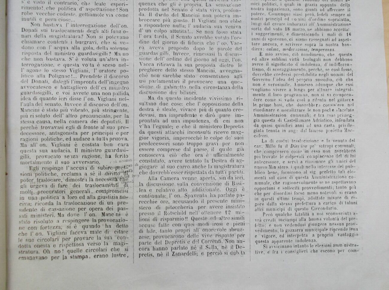 mol ti, f) reeuratori ^general i,. coni promessi in uria 'politica a loro ed alla giustizia nor ci va; ricorda la traslocatone di Uri presidente di cassazione per opera dei passiti ministeri. Ma dove 1' on. Mane ni è stato risoluto a respingere la provocatorie con fortezza; si è quando * ha dettò che l'on. Vigliani faceva male di citare le sue circolari per provare la'sua condotta onesta e rispettosa verso là magistratura. Oh no ! quelle circolari che si emanavano per la stampa ? erano lustre,