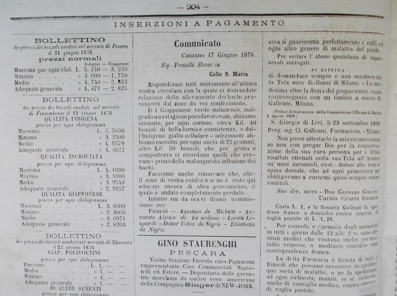 Adequati generalo . » BOLLETTINO d$i prezzi dei Òozz.oli venduti nel mercato di Iesi il 21 giugno 1876 DI TUTTE LE QUALITÀ prezzo per ogni chilogramma Massimo \...... L. 4.90 Minimo...... . . L. 2.20* Mediò . . . . , . . L, 3.9932 Adequato Generàle , . . L. 4.4007 BOZZOLI INDIGENI prezzo per ogni chilogramma Massimo ......, L, 4, 90 Minimo .. . . , , . . L. 3. %- ' Medio . . . . . . . L. 4. 7038 Adequato generalo . . . L. 4. 5703 ANNUALI i prezzo per ogni chilogramma Massimo . ......, L. 3, 25 Mtnrao . .. ..... . L. 2. 20 Medio . . . . , . . . L. 3. 1886 Adequato generale . " . . L. 9059 POLÌVOLTINl " " " S3Ì ì . ÌUSO *IIO ; prezzo por ogni chilogramma Massimo . , . . . Minimo . . . . Nedio...... Adequato generale . L. L. L. 1. 9153 GINO STAURENGHl P E SCARA Vicino Staziono Ferrata casa Pignaconi rappresentante Case Commerciali Nazionali ed Estere. Depositario delle garantite macchine da cucire vere americane della Compagnia Singer di NEW-JORK. fContinua) Tipografia Pomponj Concimi artificiali per ogni coltura delle premiate fabbriche S. C. Cav. ingegnere MEDAIL di Venezia e Bologna. PRESERVATIVO SICURO contro T umidità per muri, legnami, metalli e tele, del prof. Brucchold di Fran-* coforte. Assumersi commissioni in ognis aticolo per ogni parte d'Italia ed estero dietro equa provigione Richiamiamo V attenzione sopra il seguente Articolo tolto dalla principale Gaz-zetta Medica di Bertino: Alegmcine Medi-ctnische Central Zeitung. pag. 744, n. 63, 16 Marzo 1873: Da qualche anno viene introdotta eziandio nei nostri paesi, la Vera tela all' arnica DELLA FARMACIA* 24 DI OTTAVIO GALLEANI Milano via Maravigli Incaricati dì esaminare ed analizzare questo specifico, dopo ripetute prove ed e-sperienze, ci troviamo in obbligo di dichiarare, che questa vera Tela air Arnica di Galleani è uno specifico raccomande-volissimo sott' ogni rapporto ed un efficacissimo rimedio per i reumatKsmi, le nevralgie, sciatiche, doglie reumatiche, contusioni e ferite ci'ogni specie, applicato alle reni nelle leucorree o fiori bianchi, debolezze ed abbassamento dell' utero. Con stinti medici che visitano anche por malattie veneree, o mediante consulto con corrispondenza franca. La detta Farmacia è fornita di tutti i Rimedi che possono occorrere in qualunque sorta di malattie, e ne fa spedizione ad ognj richiesta, muniti, se si richiede, anche di consiglio medico, contro rimessa di vaglia pastale. Scrivere alla Farmacia 24, di Ottavio Galleani, Via Meravigli, Milano. Rivenditore a Teramo sig. G. Bonolis, R. Liceo. ed in tutte le città presso le primarie farmacie. Vapori Postali Francesi Società Generale di Trasporti marittimi a Vapore Linea del Brasile e della Piata partenza fissa da napoli il 10 d' ogni mese PER RIO-JANEIRO, MONTEVIDEO E BUENOS-ÀYRES Toccando Genova, Marsiglia, Barcellona, Gibilterra e S. Vincenzo partirà il 10 luglio il vapore Poitou di tonnellate 3, 000 Cap. A. Gcibaud Prezzi (in oro) I i. Classe F. 900, 2. Classe F. 700, 3 Classe F. 335 } Per merci e passeggién dirigersi al racco-j mandatario sig. Leopoldo Minùtolo Strada Pi-ìiero 26 oppure presso il signor sottoracco-mandatario Salvatore Cuotogno strada Lanzieri, vicolelto Fontanelle 15. Il viaggio del 10 agosto sarà eseguito dal piroscafo SAVOIE di 34)04) tonnellate. , . . AVVISO Trovasi vendiIji!c unJapp~czzanicrito di ! terreno con un calino in costruzione nella , Spiaggia di Montesfl v;inp'a p()ca distanza della stazione , della Torr^via. Chi desidera farne acquisto potrà dirigersi dal Sig. Ore " I ste de Cecco di Ci,UÀ S.- Angelo por le I necessarie informazioni. |