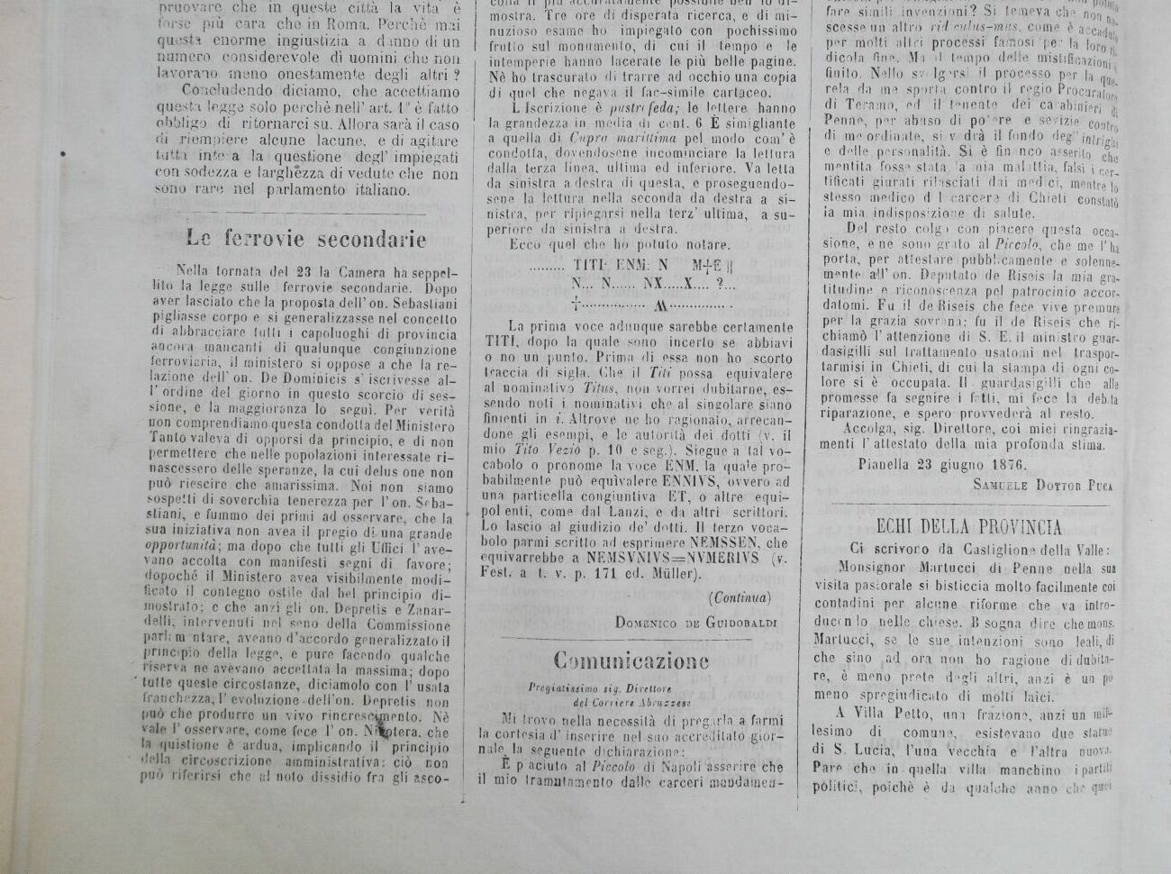 Ci scrivono da Castiglione della Valle: Monsignor Martucci di Penne nella sili visita pastorale si bisticcia molto facilmente coi contadini per alcune riforme che va intro-duccn lo .nelle ,chiese. B sogna dire chemons. Martuccio se, le sue. intenzioni sono leali, di che sino ,ad ora non ho ragione di dubitare, e meno prete de gii altri, anzi è un pò meno spregiudicalo di molti laici.