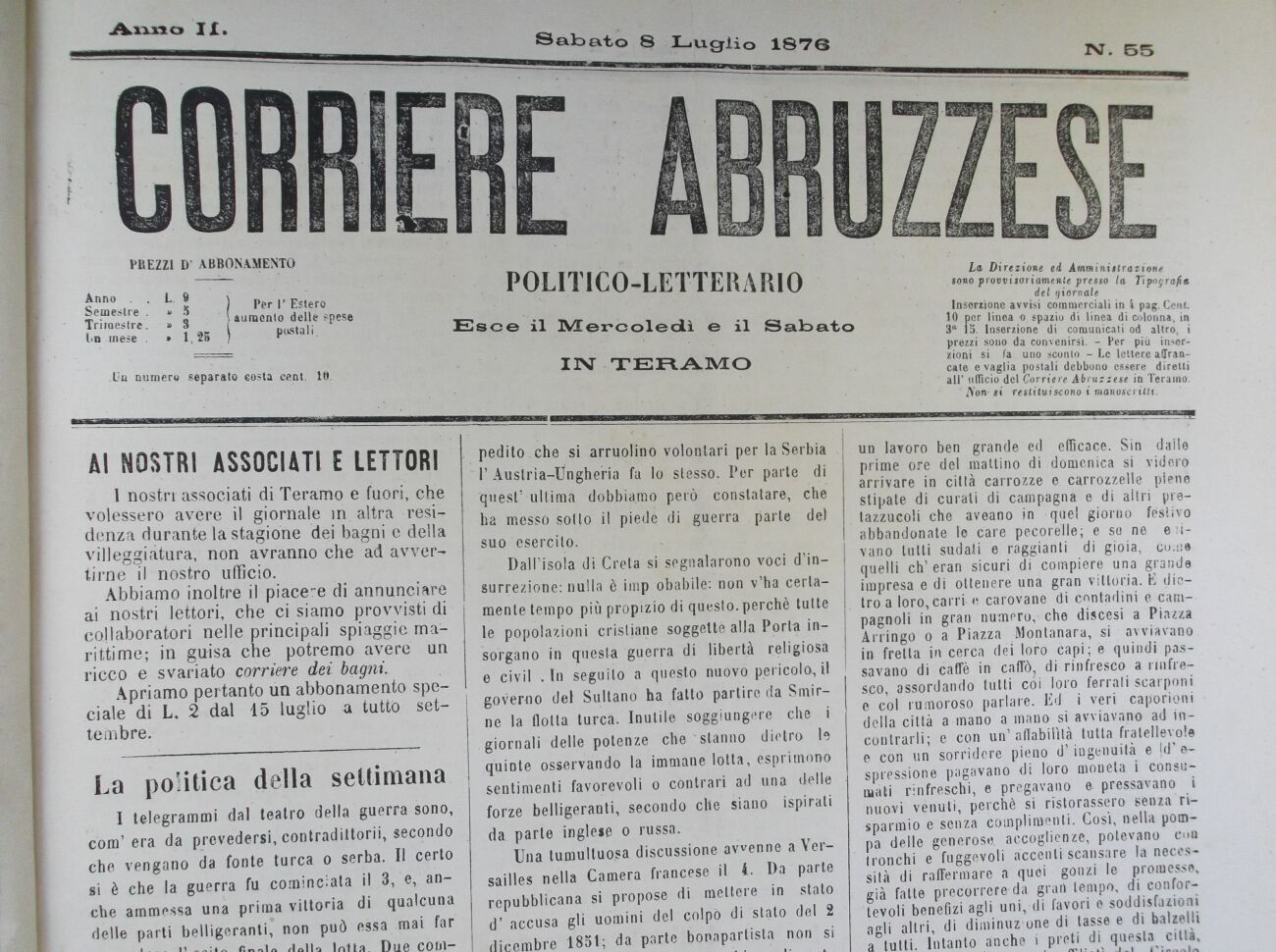1 nostri associati di Teramo e fuori, che volessero avere il giornale in altra residenza durante la stagione dei bagni e della villeggiatura, non avranno che ad avvertirne il nostro ufficio.