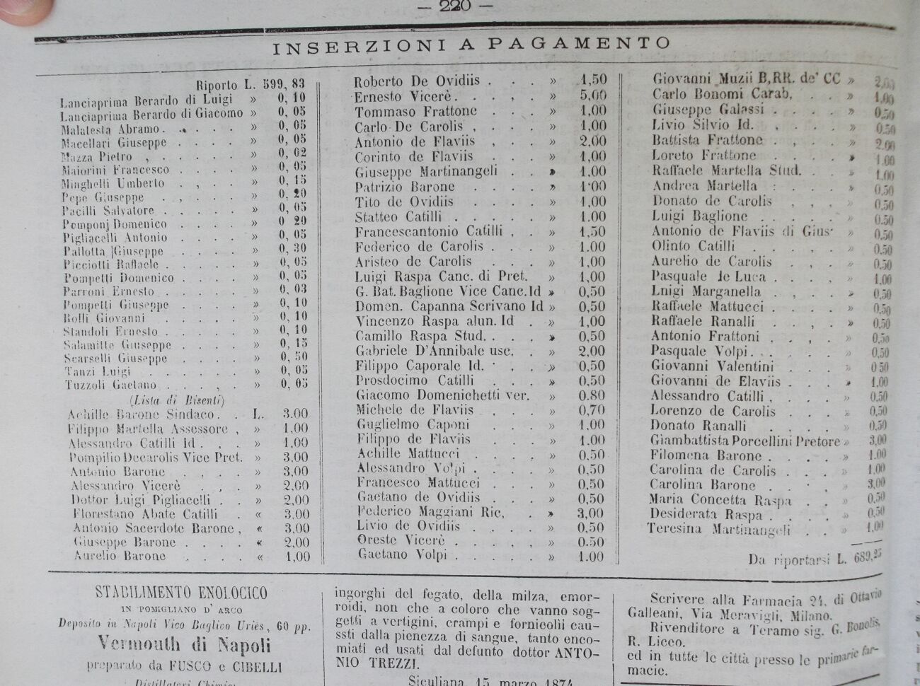 Rivenditore a Teramo sig. G. Bonolis, R. Liceo.