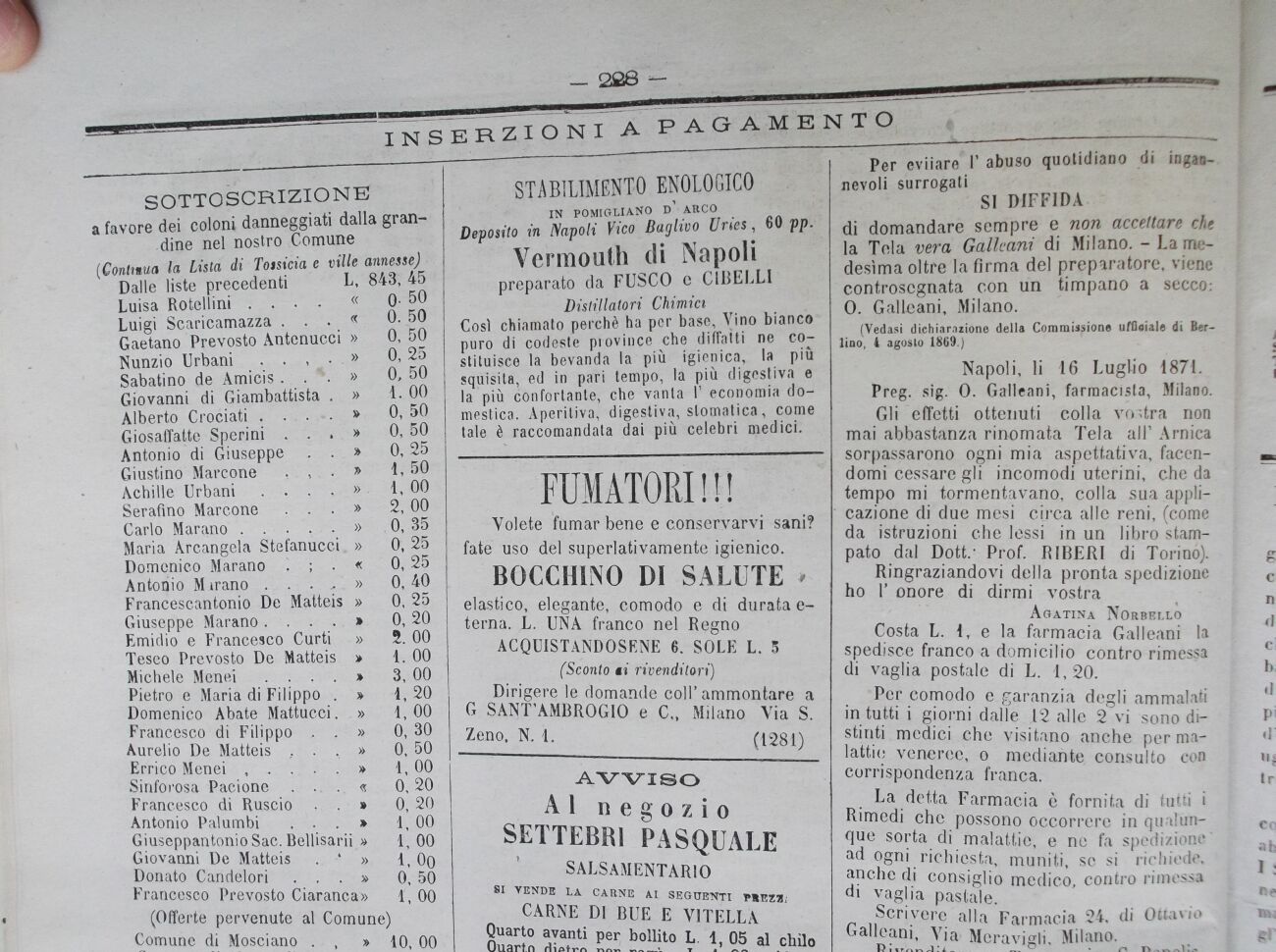 La detta Farmacia è fornita di tutti \ Rimedi che possono occorrere in qualunque sorta di malattie, e ne fa spedizione" ad ogni richiesta, muniti, se si richiede, anche di consiglio medico, contro rimessa di vaglia pastale.