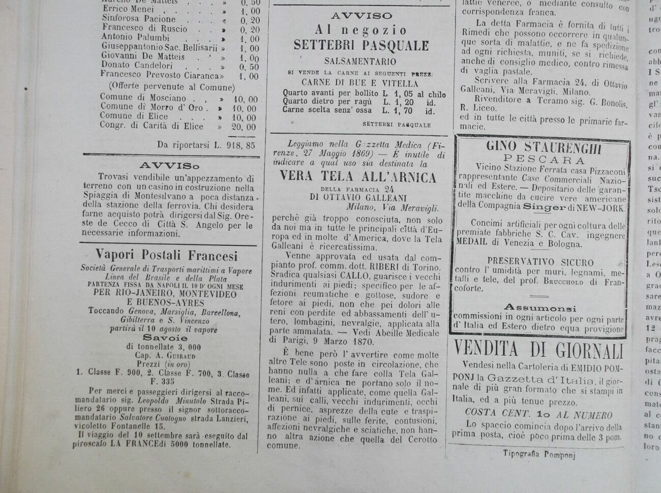 Rivenditore a Teramo sig. G. Bonolis, R. Liceo.