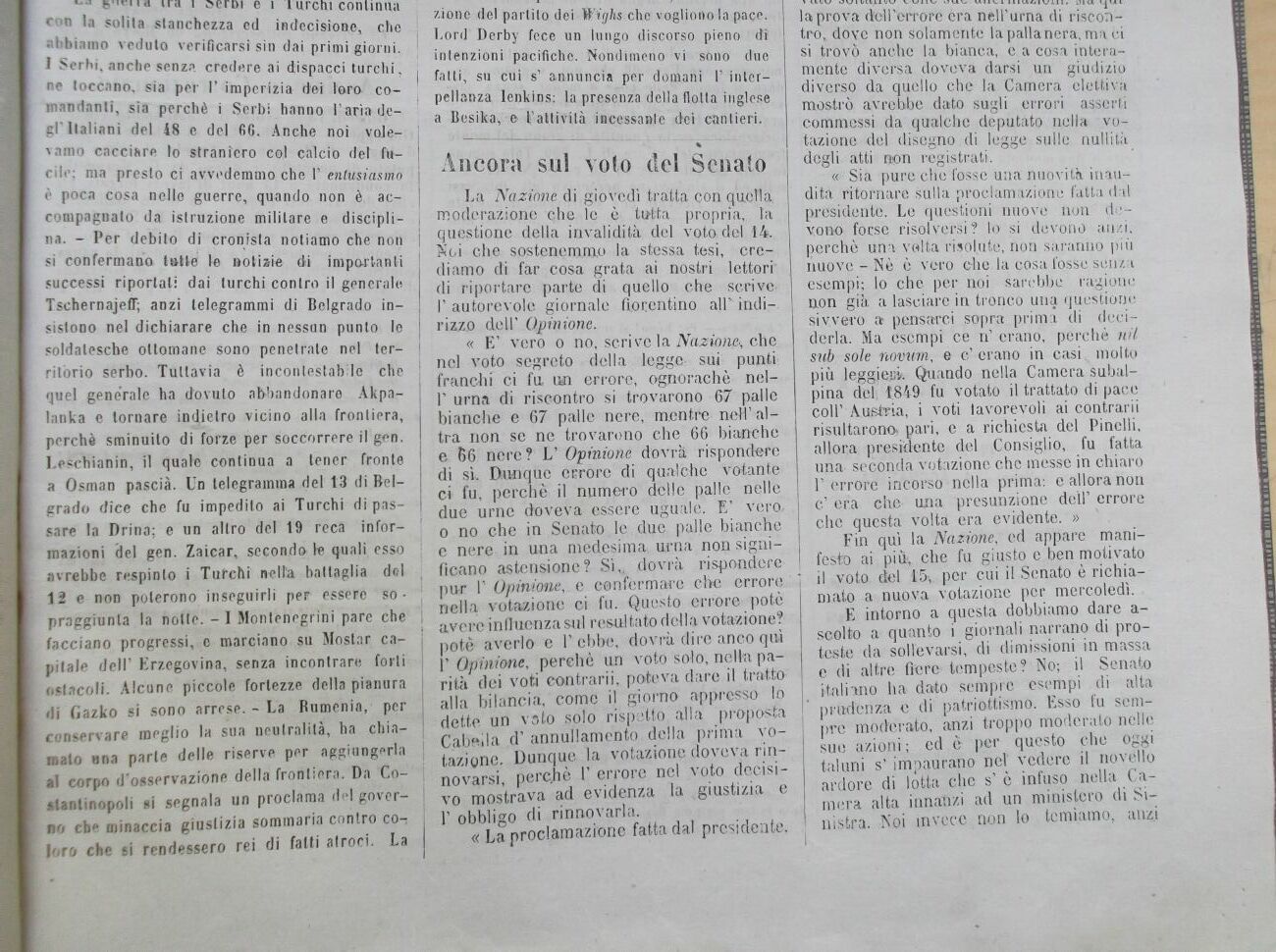 La Nazione di giovedì tratta con quella, moderazione che le è tutta propria, la questione della invalidità del voto, del 14 Noi che sostenemmo la stessa tesi, crediamo di far cosa grata ai nostri lettori di riportare parte di quello che scrive-l'autorevole giornale fiorentino air indi-. I rizzo dell' Opinione.