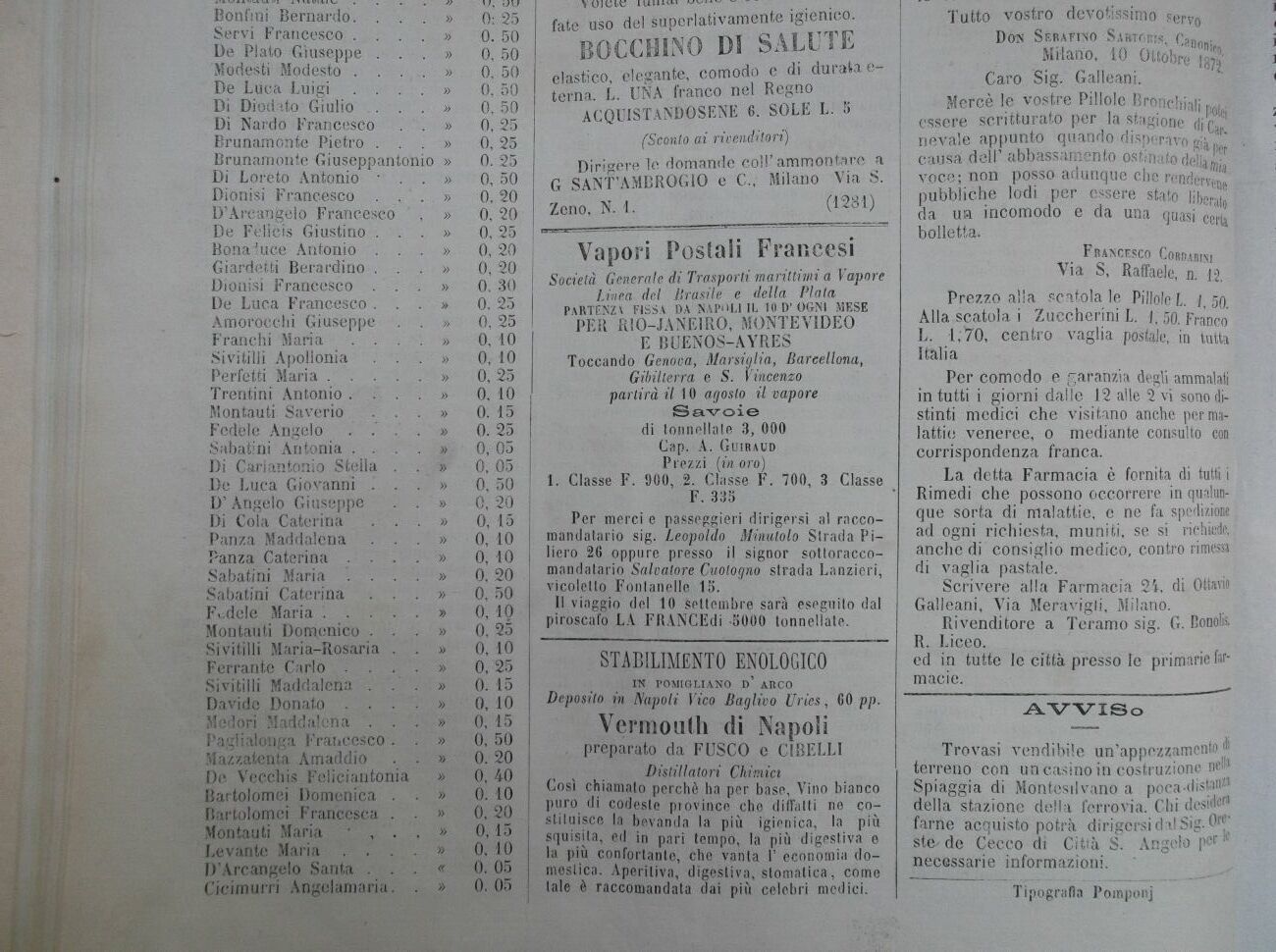Rivenditore a Teramo sig. G. BoneE R. Liceo.