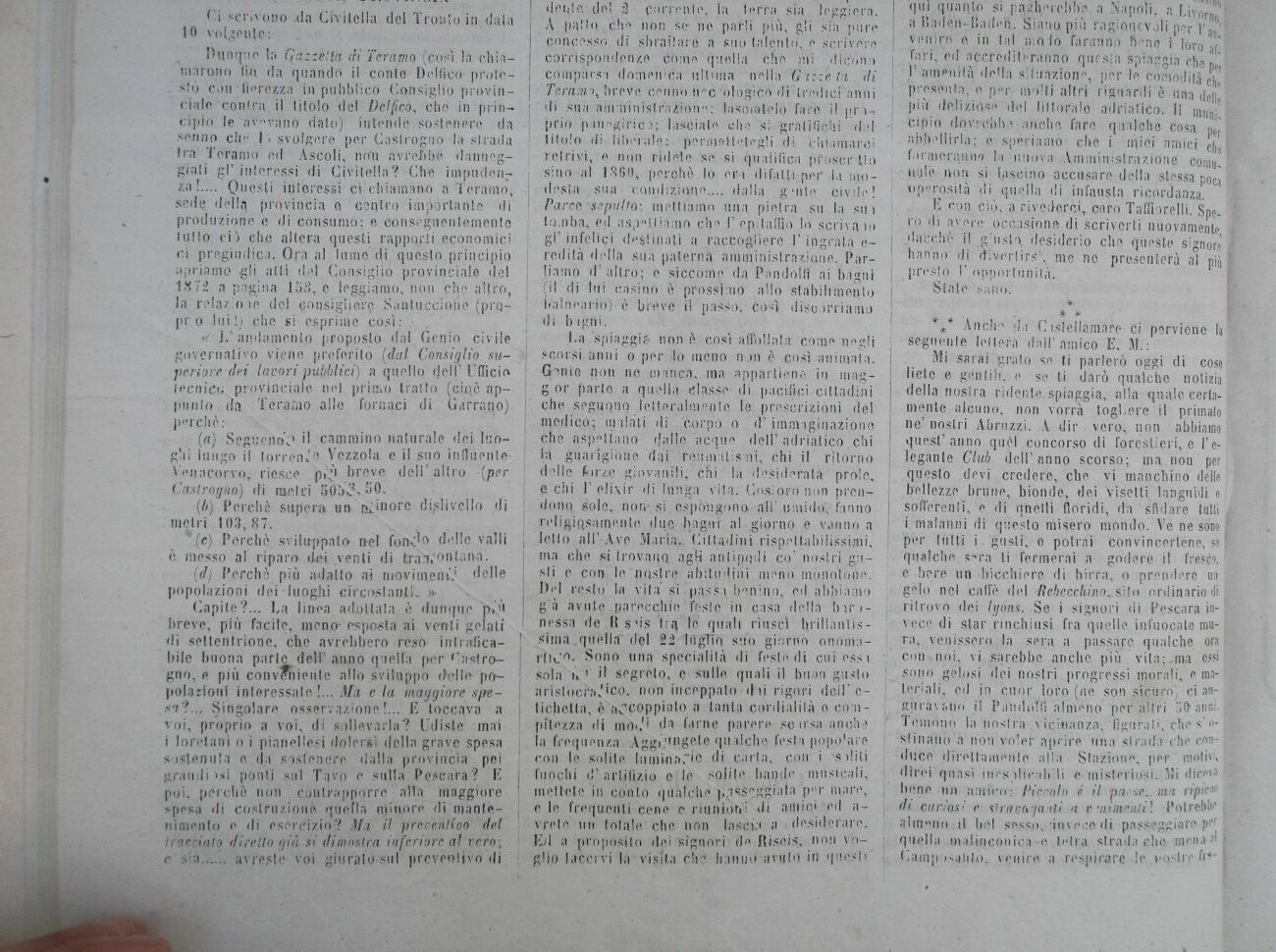 Dunque la Gazzella di Ter a m q (così la chiamarono lui da quando il conle Delfico protestò con -finrezza in pubblico Consiglio provinciale con tra il titolo del Delfico, che in principio le avevano dato) intende sostenere da senno che 1 » svolgere per Castrogno la strada Ira Teramo ed Ascoli, ntfn avrebbe datineg-I interessi di Civilella'? Che impudenr