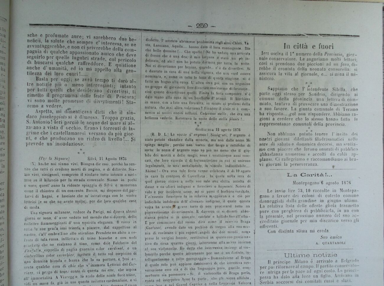 (Per U Signore) Silvi., li Agosto 1876