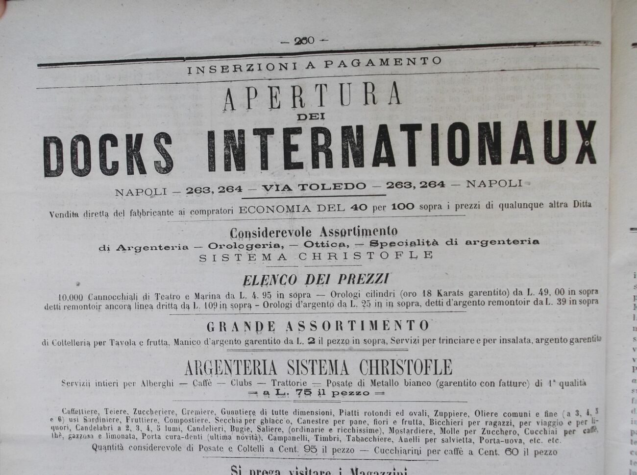 NAPQJLI 263, 264 VÌA. TOLEDO 263, 264 NAPOLI Vendita dirptt^ del fabbricante ai compratori ECONOMIA DEL 4P per ÌOO sopra i prezzi di qualunque altra Ditta