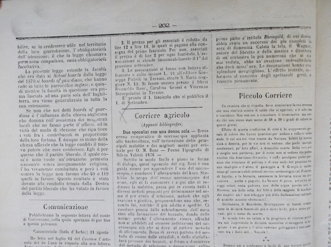 3. Le associazioni si fanno con lettera affrancala e collo inviare L, 10 all'editore Giuseppe Pisteili in Teramo, strada S. Maria maggiore N. 13. Si fanno ancora presso i librai Romualdo Ross!, Carolina Grossi e Vincenzo SlroppoJalini in Teramo.