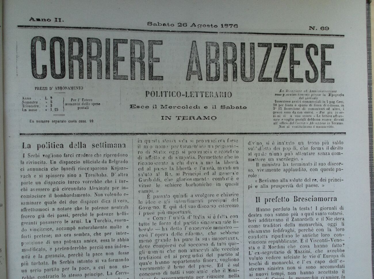del giornale Inserzione avvi-i -commerciali in \ pag. Cent. 10 per linea o spazio di linea di colonna, in 3'* 15. liiKcrÀione -di cuniumcati od altro, i sprezzi sono da con ettirai. - J'er .più in-er-zi«ni si a uno «conto - Le lettere affrancale e vaglia postali debbono essere diretti all' ufficio del Corriere Ajbì utzese in Teramo.