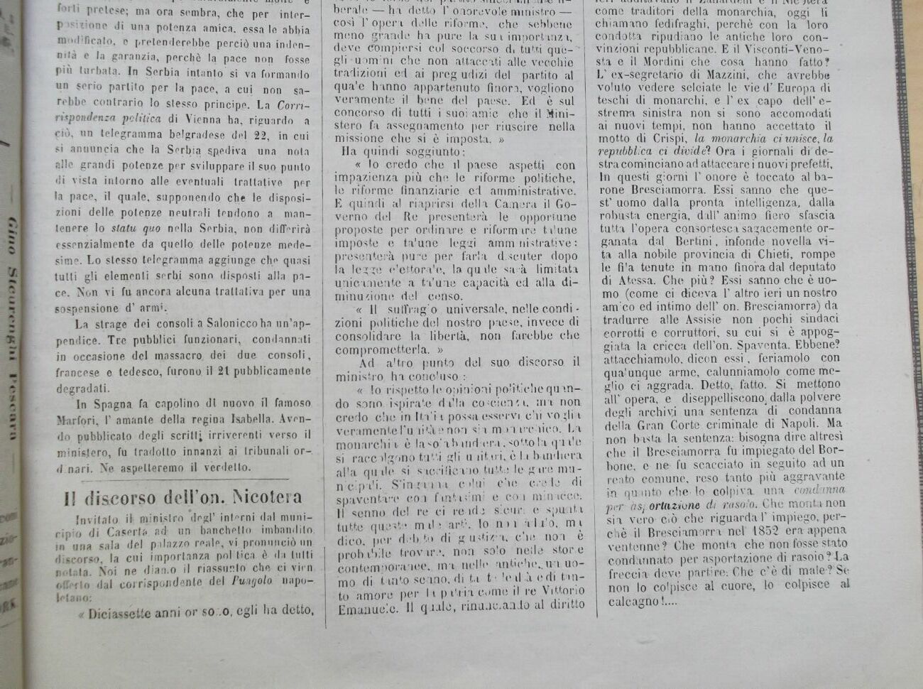 Invitalo il' ministro de gì' interni dal municipio di Caserta ad un banchetto imbandito, in una sala del palazzo reale, vi pronunciò un discorso, la cui importanza poi bica, è da iti Iti notala. Noi ne diamo il riassunto che ci virn offerto dal corrispondente del Pungolo napoletano: