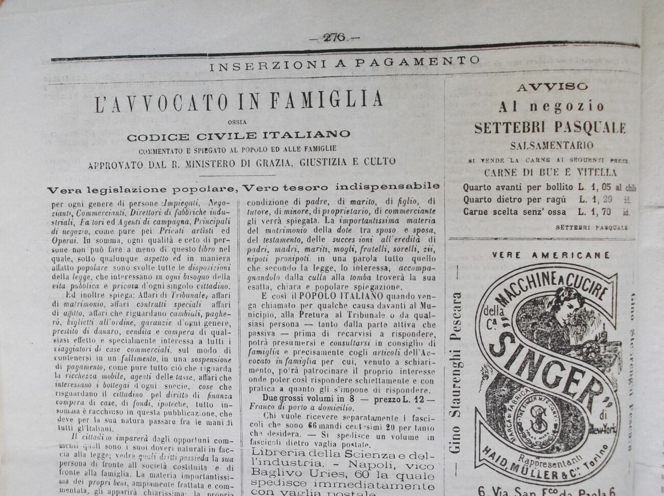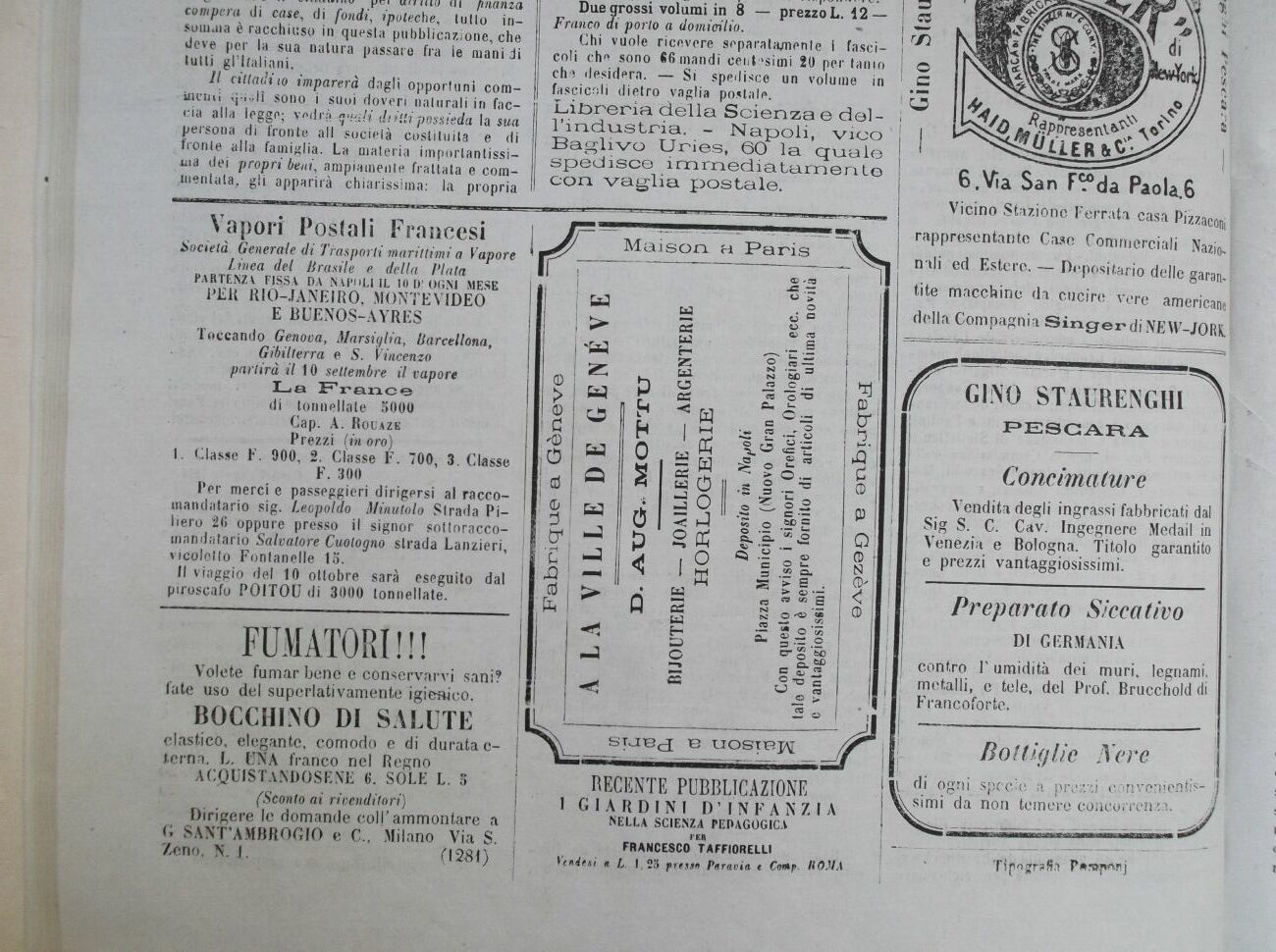 Vicino Staziono Ferrata casa Pizzaconì rappresentante Case Commerciali NazioJ mli ed Estere. Depositario delle garantite macchine da cucire vere americane della Compagnia Singer di NE W-J0RK.Ì