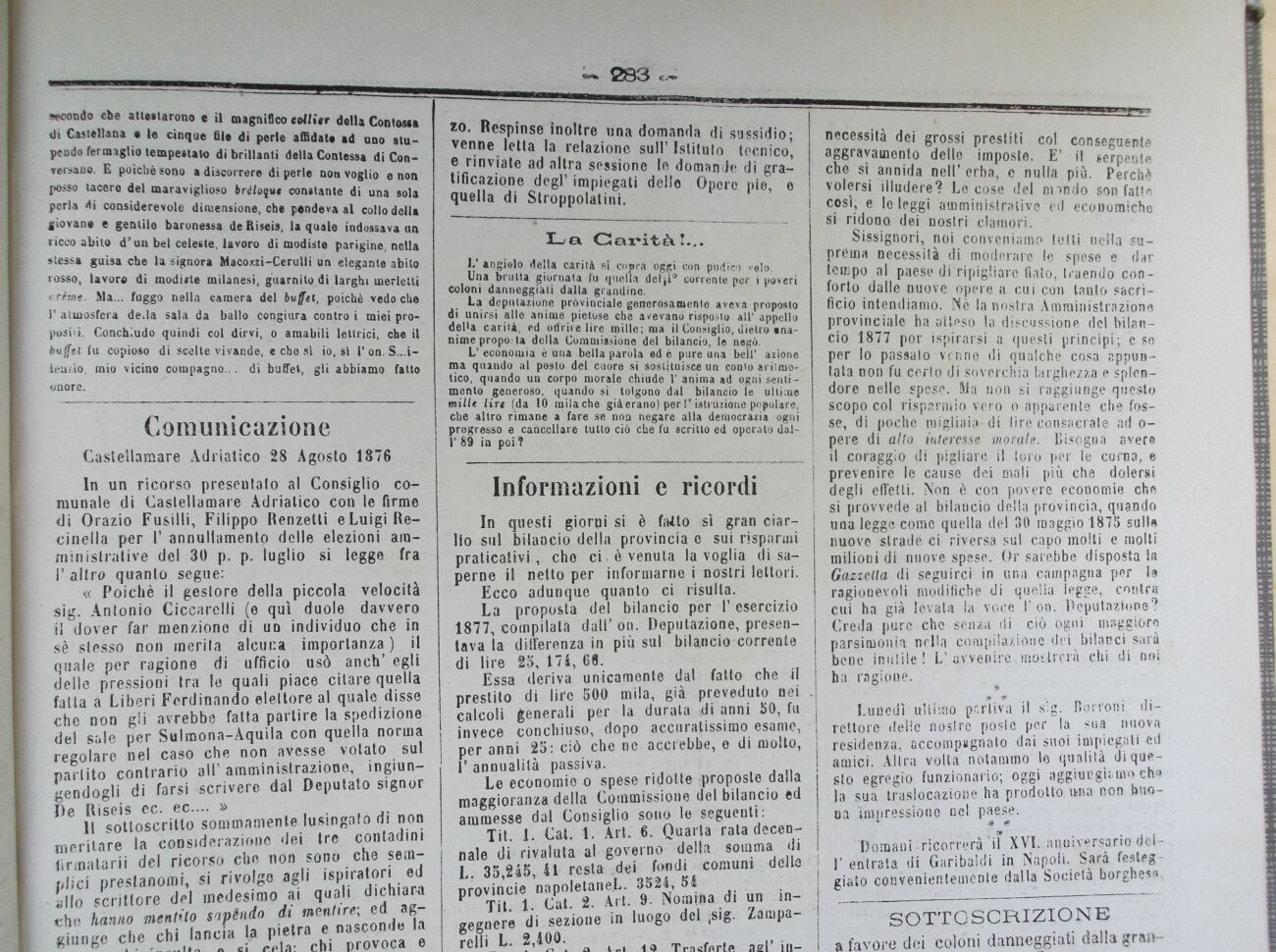 La deputazione provinciale generosamente aveva proposto di unirsi alle anime pietose che avevano risposto all' appello delta carità, ed offrire lire mille; ma il Consiglio, dietro inanime propo.-la della Commissiono del bilancio, le negò.