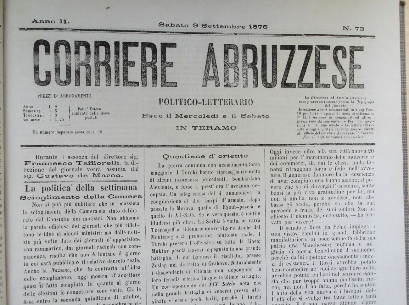 del giornale Inserzione avvisi .commerciali in ì pag. Cent. 10 por linea o spazio di linea di colonna, in 3a 15. Inserzione di comunicati od altro, i prezzi sono da convenirsi. - Per più inserzioni si fa uuo sconto - Le lettere affrancate e vaglia postali debbono .essere diretti all' ufficio del Corriere Abruzzese in Teramo.