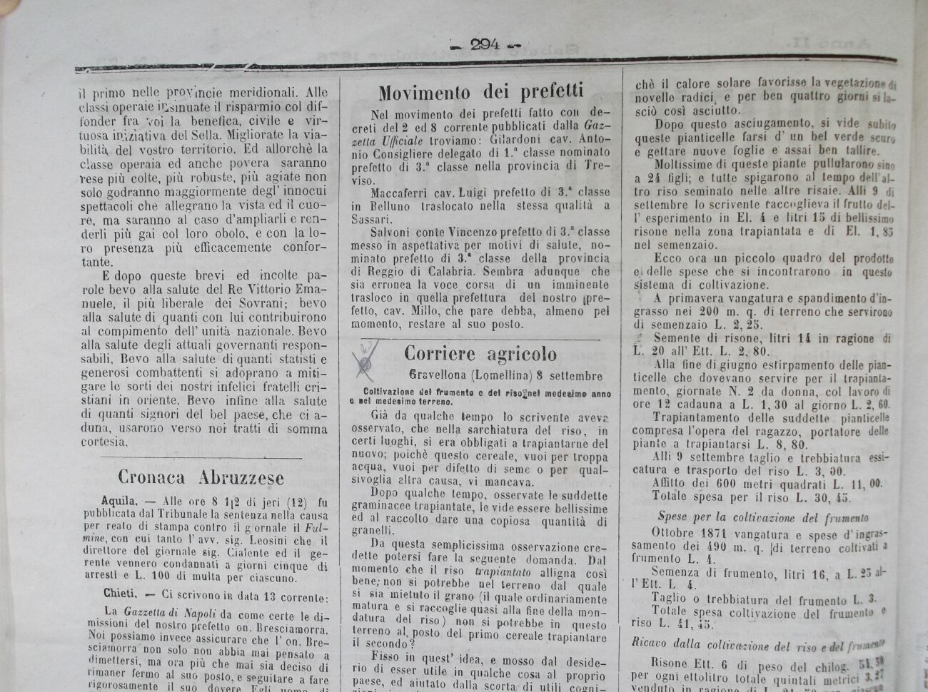 Ai 16 aprile del 72 nella residua zona di terreno, dopo averla Uene orizzontata e minutamente concimata, seminò il riso, che doveva servire pel trapiantamelo.