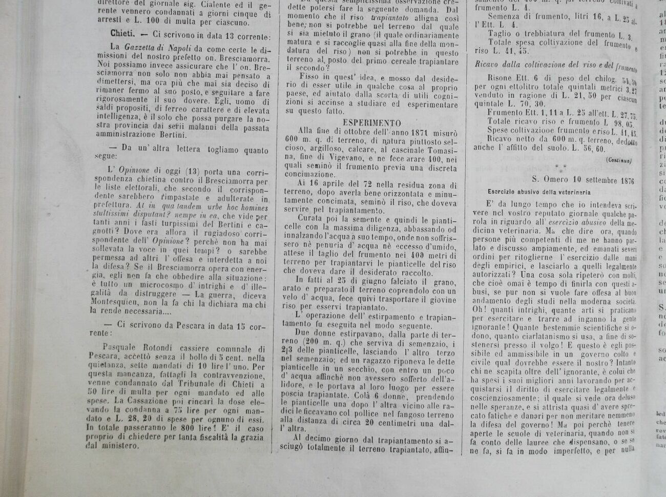 Alla fine di ottobre dell'/anno 1871 misurò 600 m. q. di terreno, di ivatura piuttosto selcioso, argilloso, calcare, ài cascinale Tomasi-na, fine di Vigevano, e ne fece arare 400, nei quali seminò il frumento previa una discreta concimazione.