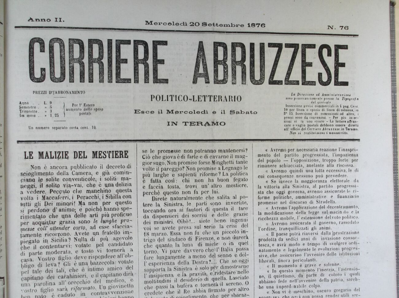 CORRIERE ABRUZZESE - Annata 1876 |