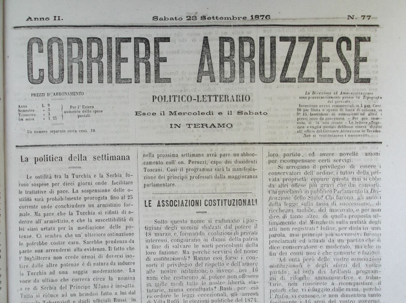 del giornale Insetzlone avvisi commerciali in l pag. Cent. 10 pèr linea o spazio di line»! di colonna, ut 3a 15. Inserzione di comunicati od altrd, i prezzi .sono-da convenirsi. - Per più i inserzioni si fa' uno sconto - Le lettere a(Trficaie e vaglia postali debbono essere diretti ali,', ufficio dei-Corriere Abruzzese in Teramo. j\on si restituiscono i manoscritti,