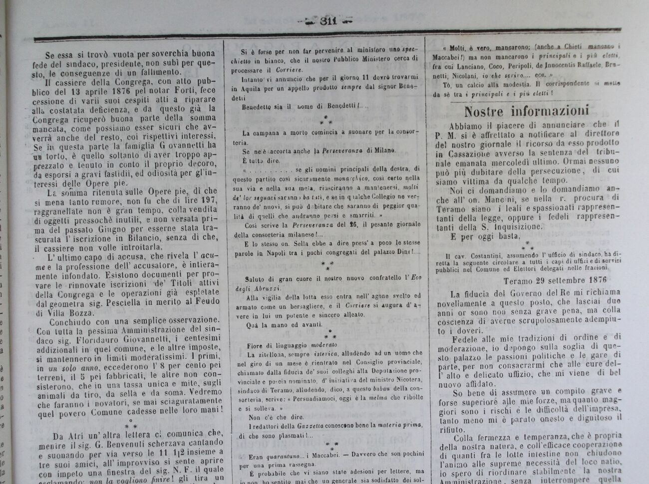Noi ci domandiamo e lo domandiamo anche all' on. Mancini, se nella r. procura di Teramo siano i leali e spassionati rappresentanti della legge, oppure i fedeli rappresentanti della S. Inquisizione.