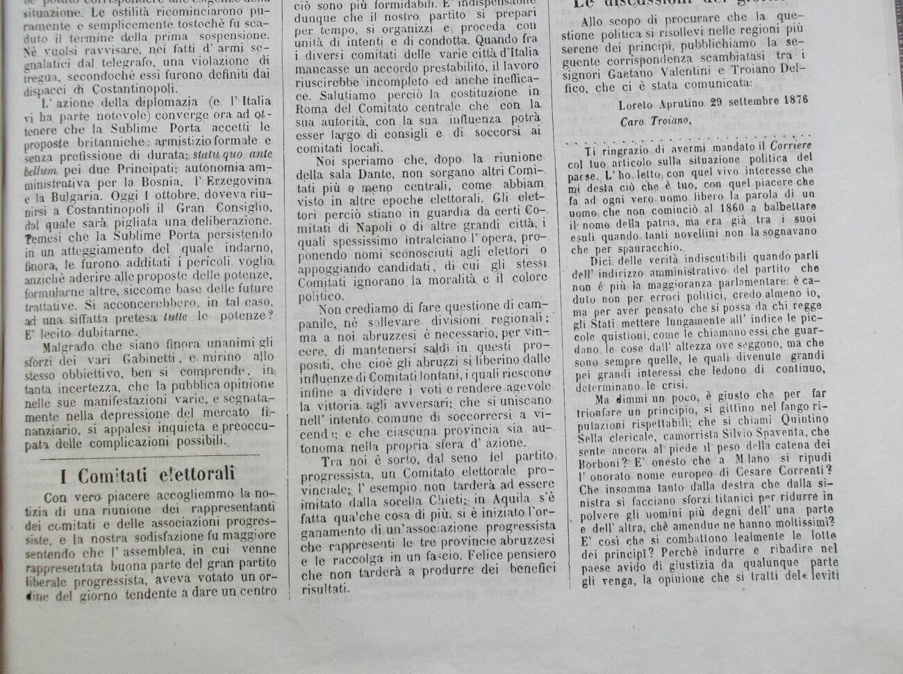 Allo scopo di procurare che la questione politica si risollevi nelle regioni più serene dei principi, pubblichiamo la seguente corrispondenza scambiatasi tra i signori Gaetano Valentini e Troiano Delfico, che ci è stata comunicata: