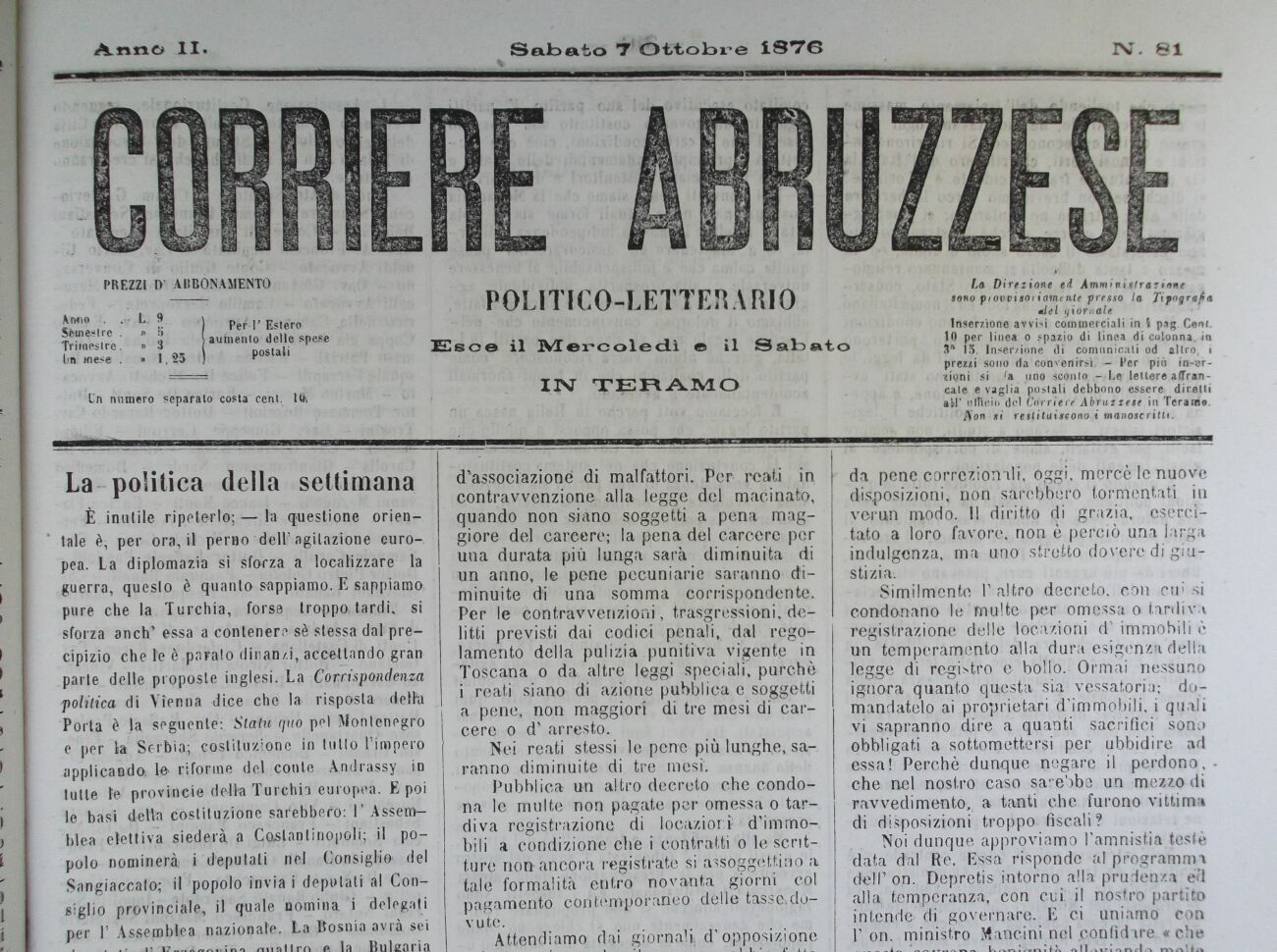miei giornale Inserzione avvisi commerciali in 4 pag. Ceni. 10 per linea o spazio di linea di colonna, in 3n 15. Inserzióne di comunicati od altro, i prezzi sono da convenirsi. Per piò in-er-zioni si ra uno sconto - Le lettere affrancate e vaglia postali debbono essere diretti all' ufficili del Corriere Abruzzese in Teramo.