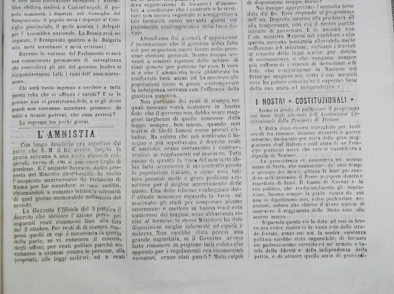 Attendiamo dai giornali, d'opposizione V insinuazione che il governo, abbia fatto, ciò per acquistare nuovi favori nelle, prossima elezioni generali. Siamo troppo avvezzi a sentirci ripetere delle accuse di simil genere per poterne far caso. Il vero si è che 1' ammnistia testò pbbbliciti ha confortato tanti animi ed ha mostrato alle popolazioni come si possa contempcrare la indulgenza sovrana con l'efficacia della giustizia punitiva.