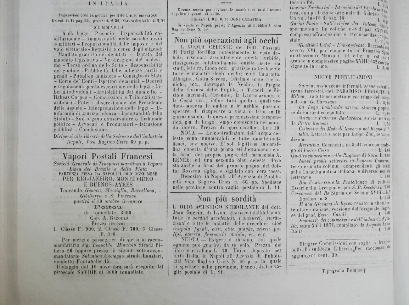 Si vende in Napoli presso 1' Agenzia di Pubblicità vico Raglivo. Uries N. 60.