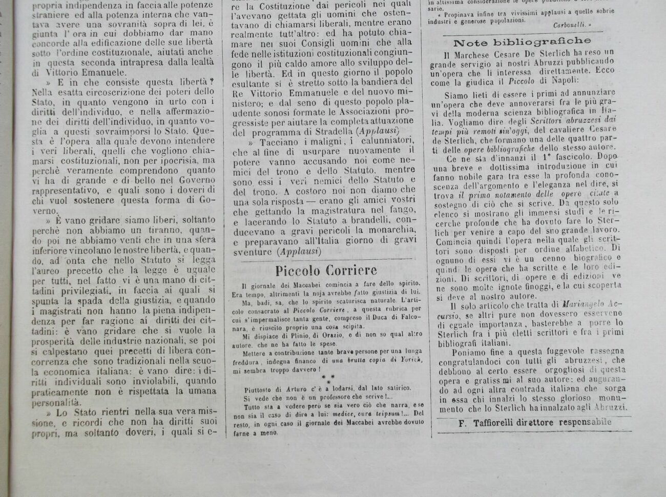 Il Marchese Cesare De Sterlich ha reso un grande servigio ai nostri Abruzzi pubblicando un'opera che li interessa direttamente. Ecco come la giudica il Piccolo di Napoli: