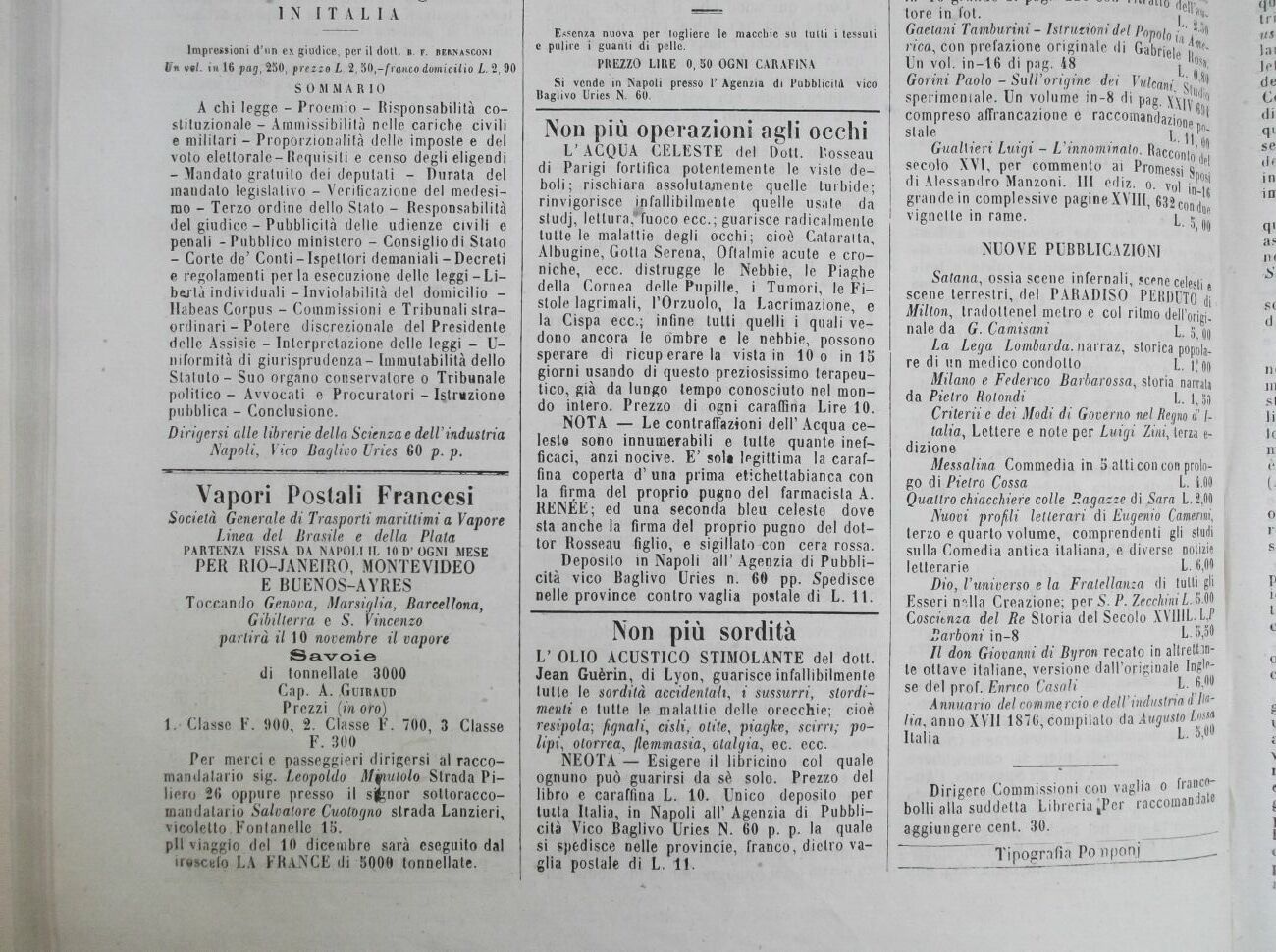 Si vende in Napoli presso P Agenzia di Pubblichi vico Baglivo Uries N. 60.