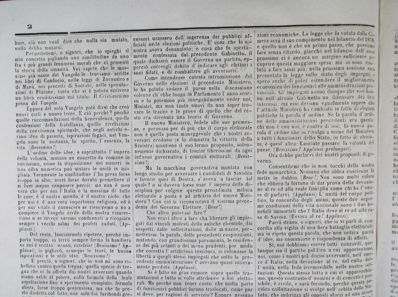Parrà strano, o signori, che io vi parli di concordia alla vigilia di una fiera battaglia elettorale; ma io ripeto questa parola, che non indica parità d'idee, ma comunione e rispondenza di affetli.