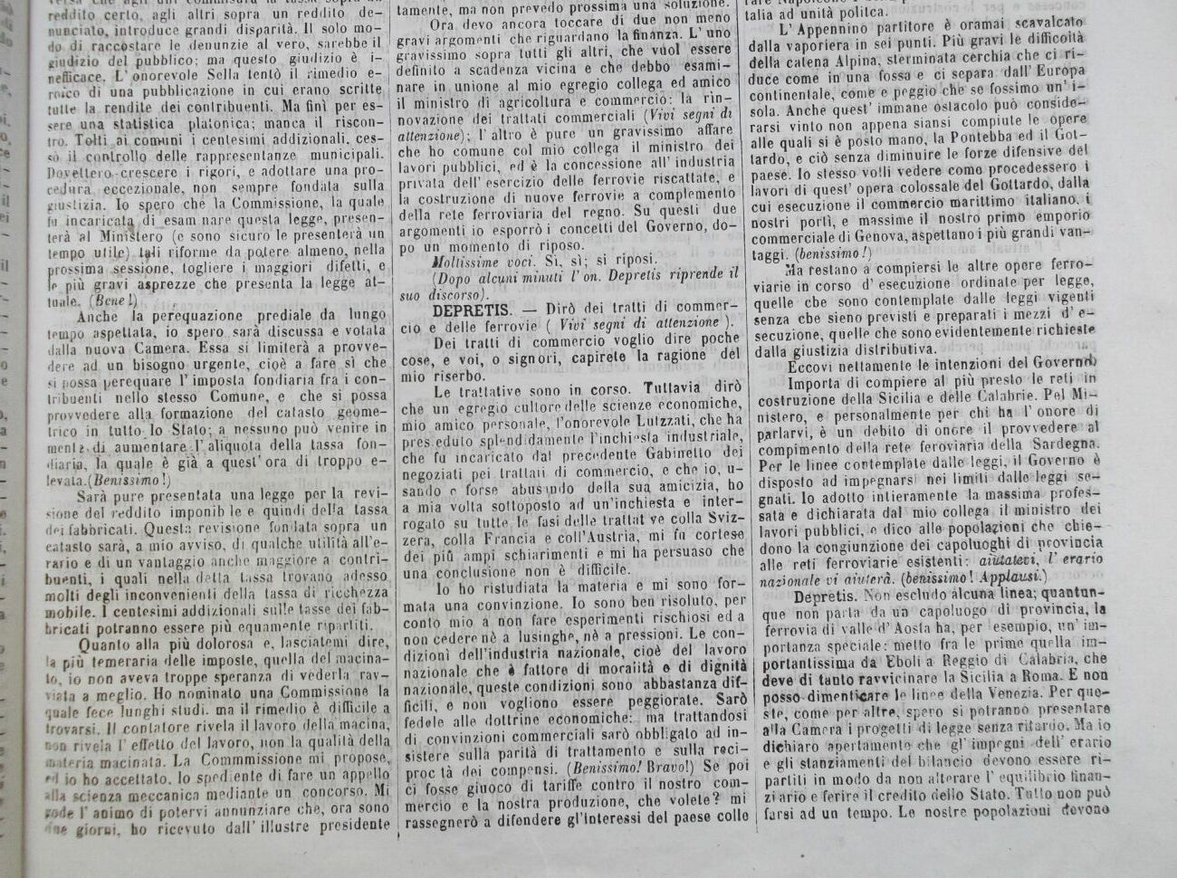 DEPRETIS. Dirò dei tratti di commercio e delle ferrovie' ( Vivi segni di attenzione ).