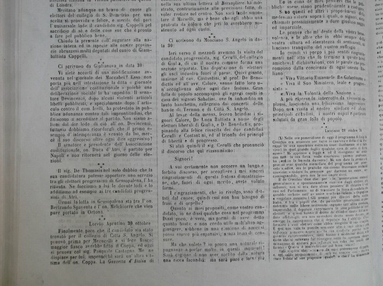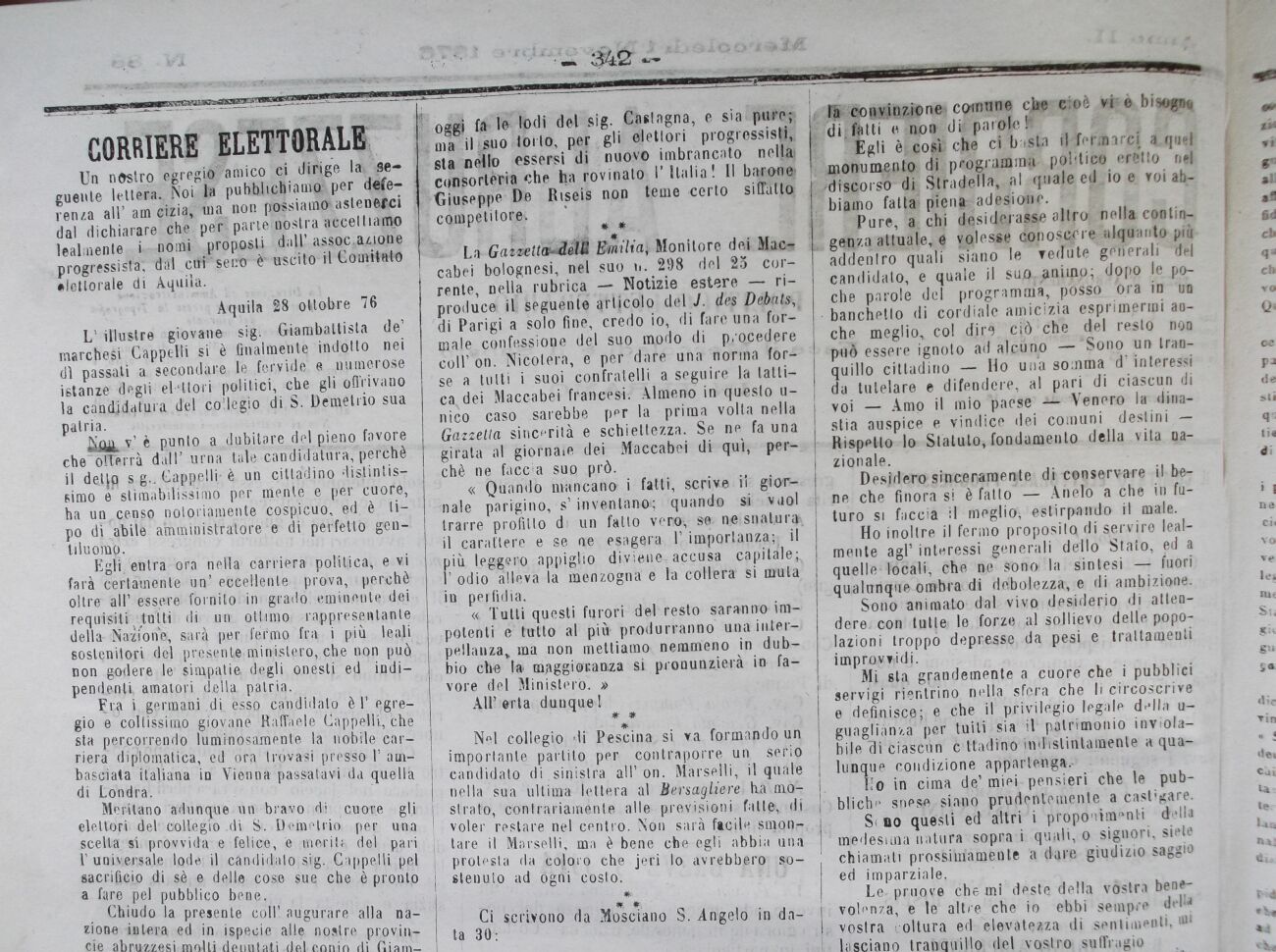 Chiudo la presente coli' augurare alla nazione intera ed in ispeoie alle nostre Provincie abruzzesi molti deputati del conio di Giambattista Cappelli.