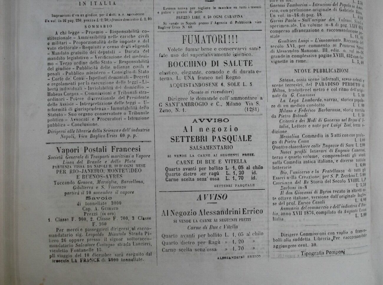Per merci e passeggieri dirigersi^ raccomandatario sig. Leopoldo Minutolo Strada Pi^ liero 26 oppure presso il signor sottoraccomandatario Salvatore Cuotogno strada Lanzieri, vico}etto Fontanelle 18. pll viaggio del 10 dicembre sarà eseguito dal irwcvfa LA FRA^CK di K000 toansllale.