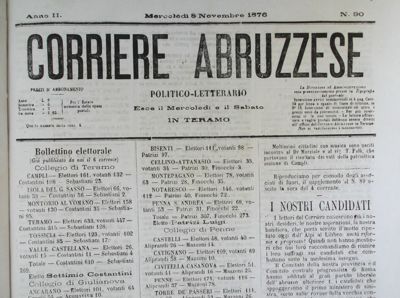 TI Comitato della nostra provincia e il Comitato centrale progressista di Roma hanno additati al gran partito liberale dell' àbruÉzo ulteriore 1. i candidati che appoggeranno il primo ministero di sini-