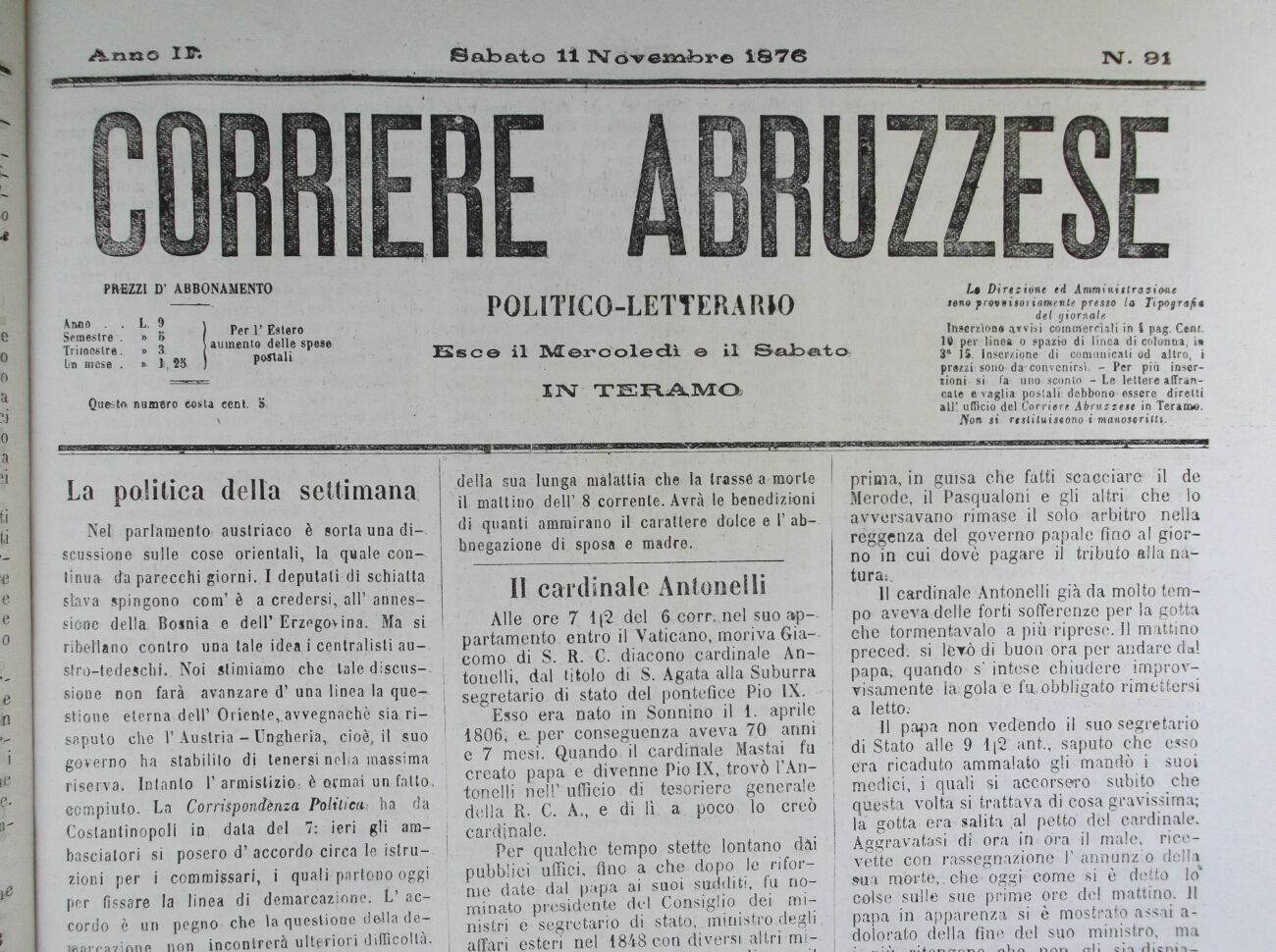 del giornale Inserzione avvisi commerciali in i pag. Cent. 19 per linea o spazio di linea di colonna, ia 3* 13. Inserzione di comunicati od altro, i prezzi: sono-da-convenirsi. - Per più inserzioni. si fa uno-sconto - Le lettere affrancate e vaglia postali debbono' essere diretti aU! ufficio delCorriere Abruzzese in Teramo.