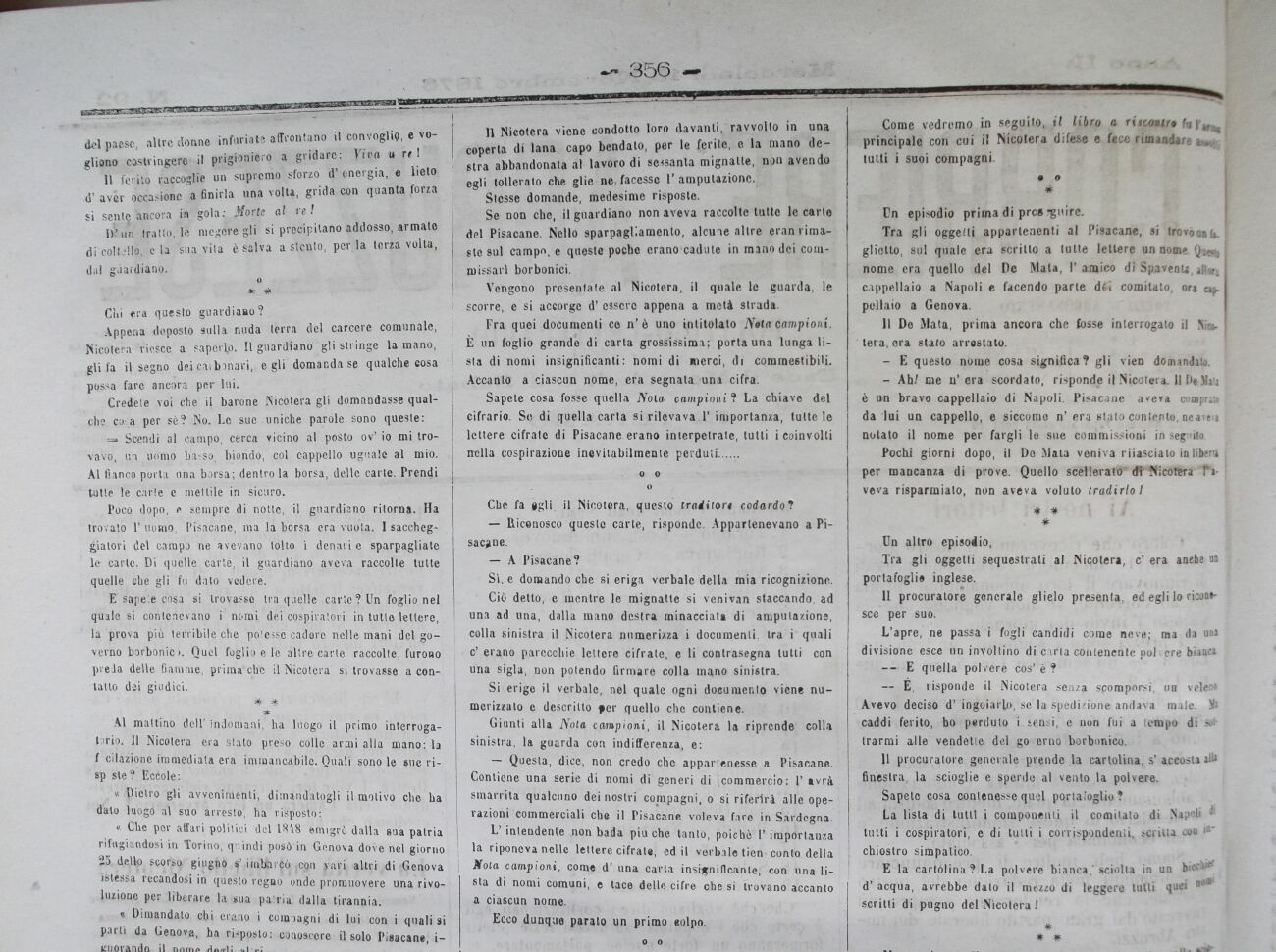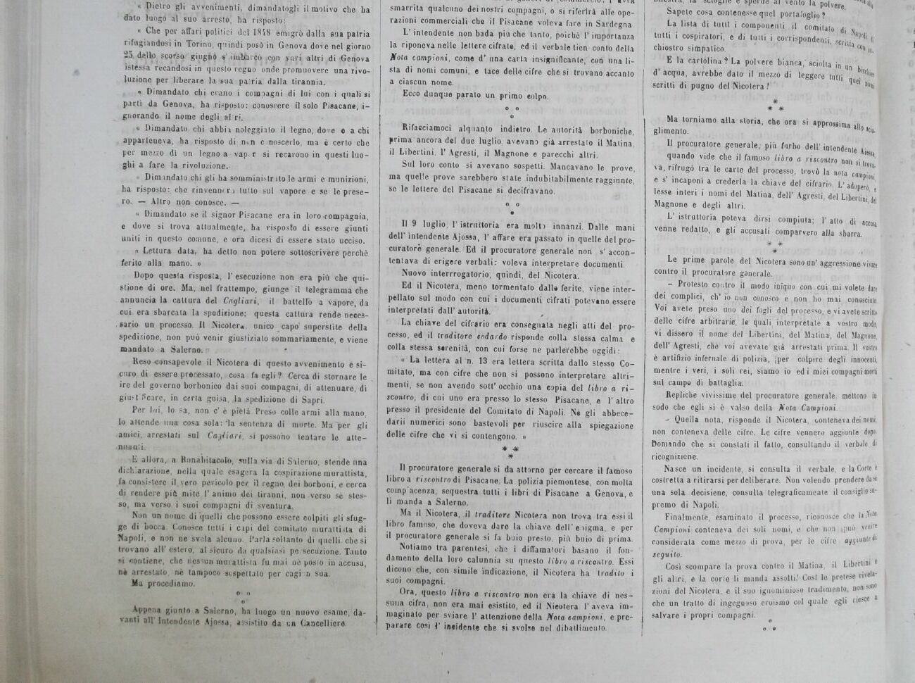 Il procuratore generale si da attorno per cercare il famoso libroa risconti-odi Pisacane. La polizia piemontese, con molla compiacenza, sequestra tutti i libri di Pisacane a Genova, e li manda a Salerno.