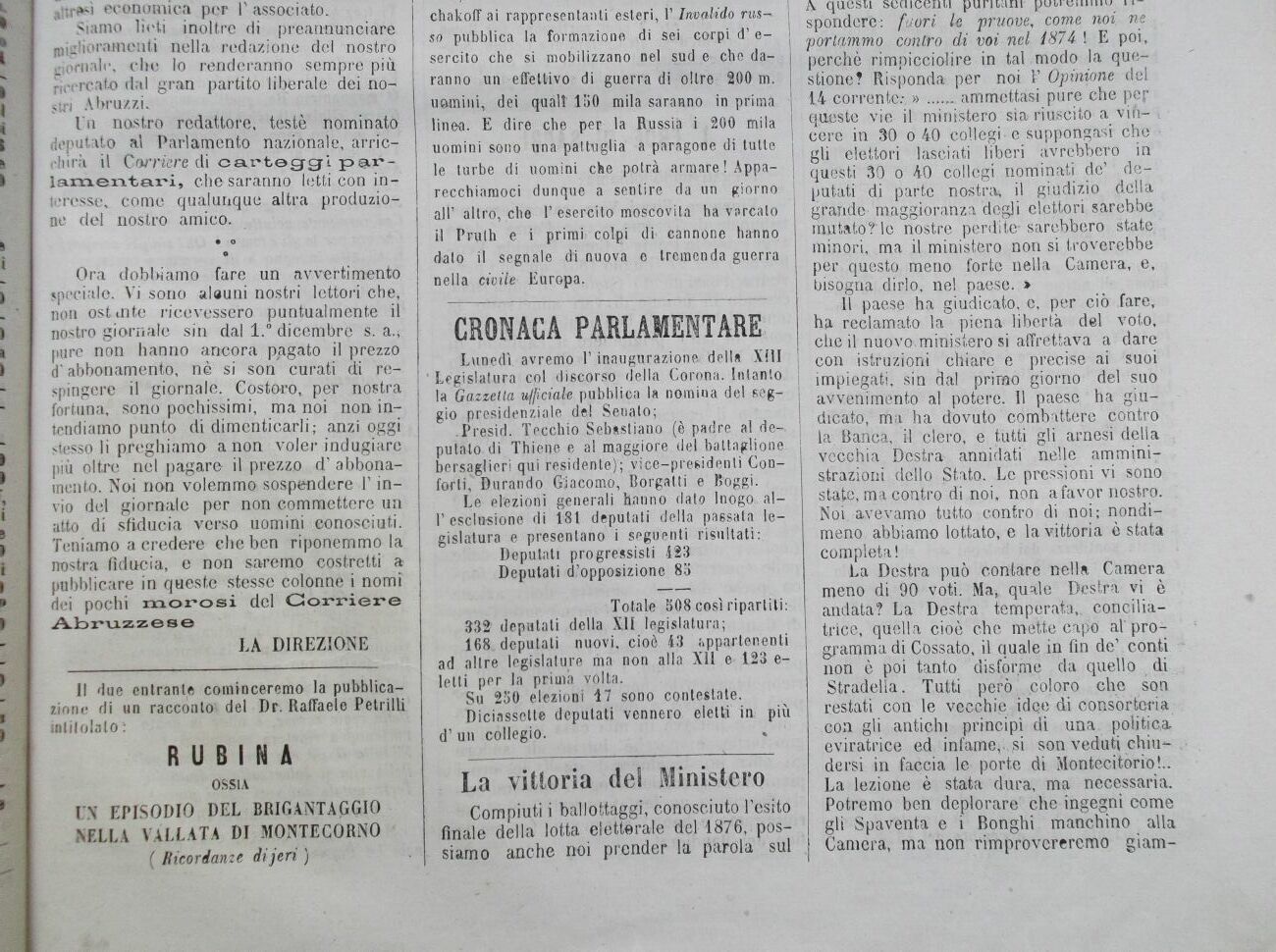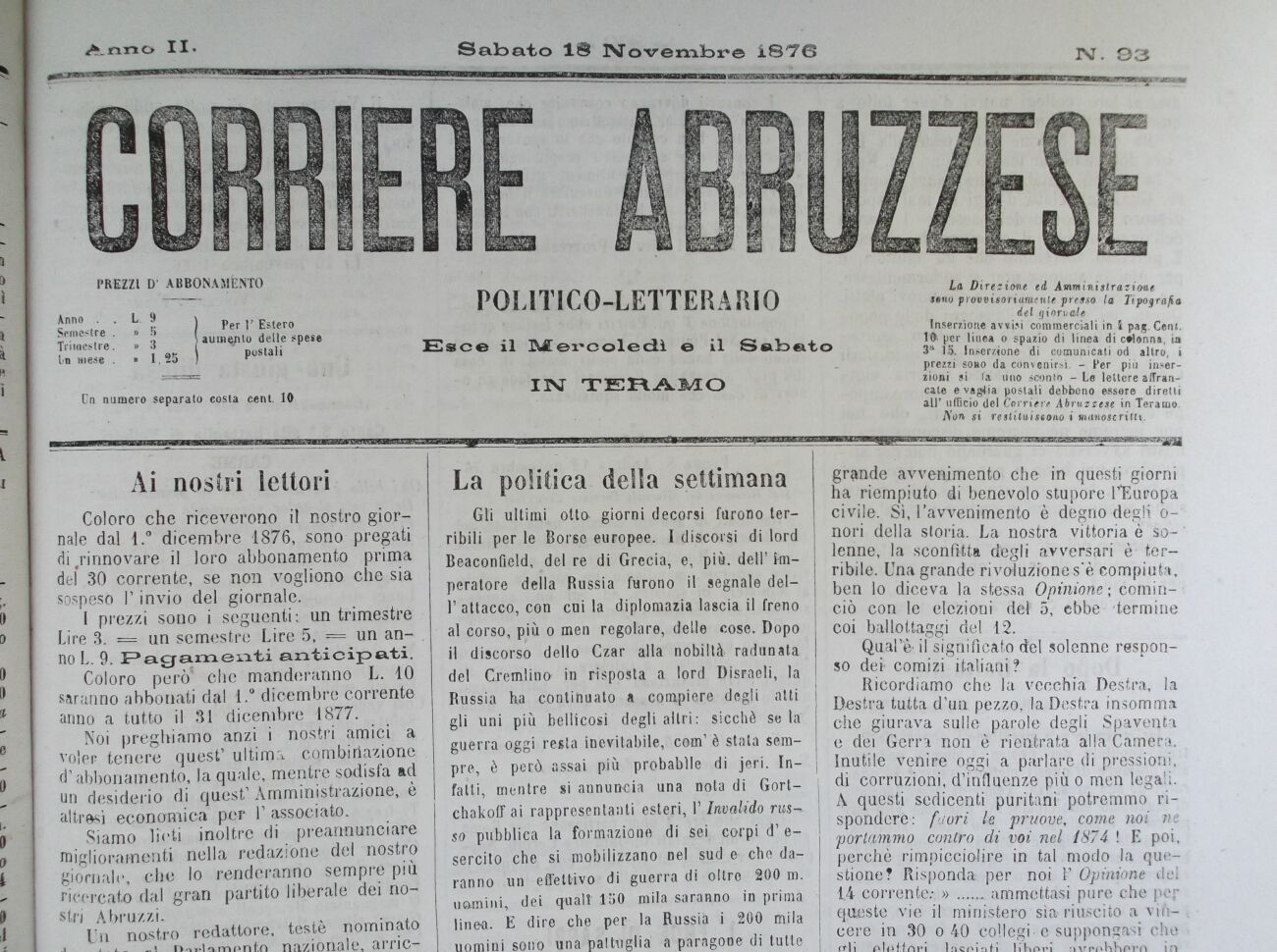Siamo lieti inoltre di preannunciare miglioramenti nella redazione del nostro giornale, che lo renderanno sempre più ricercato dal gran partito liberale dei nostri Abruzzi.