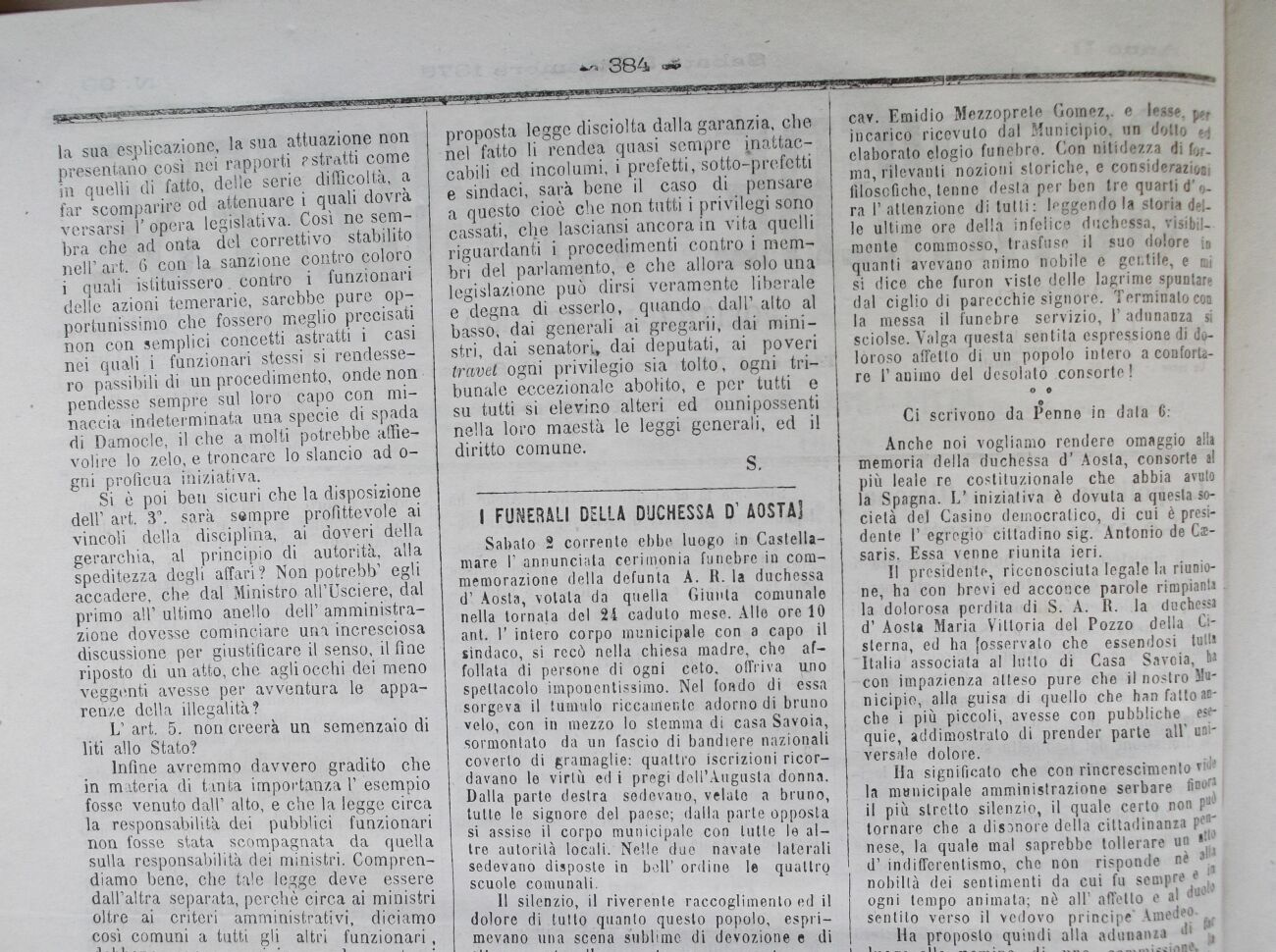 Ila significalo che con rincrescimento tw', la municipale amministrazione serbare finora , il più stretto silenzio, il quale certo non pUt tornare che a disonore della cittadinanza p*** nese, la quale mal saprebbe tollerare uo i>,t ìr indifferentismo, che non risponde nè w nobiltà dei sentimenti da cui fu sempre * 1 ogni tempo animata; nè all' affetto e al duof sentilo verso il vedovo principe" Amedeo-