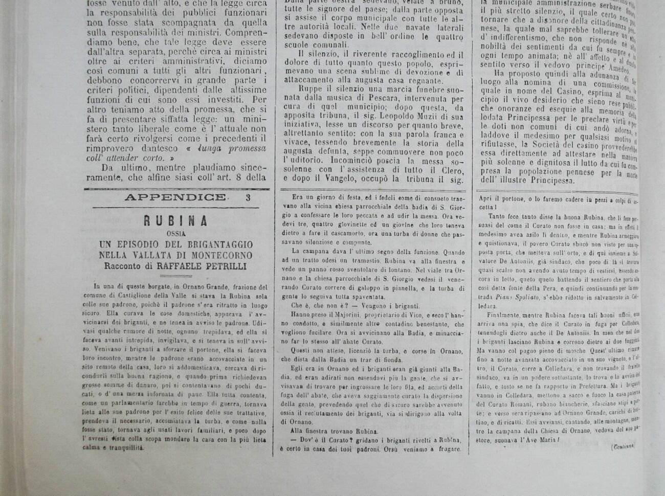UN EPISODIO DEL BRIGANTAGGIO NELLA VALLATA DI MONTECORNO Racconto di RAFFAELE PETRILLI