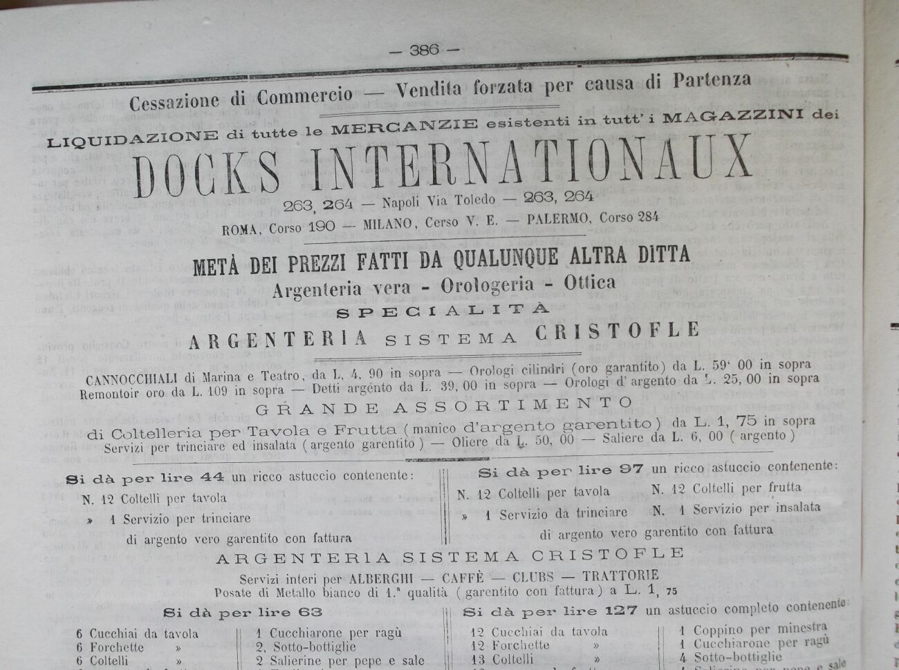263 264 Napoli Via Toledo 263, 264 ROMA, Corso 190 2 MILANO, Cereo V. E. PALERMO, Corso 284