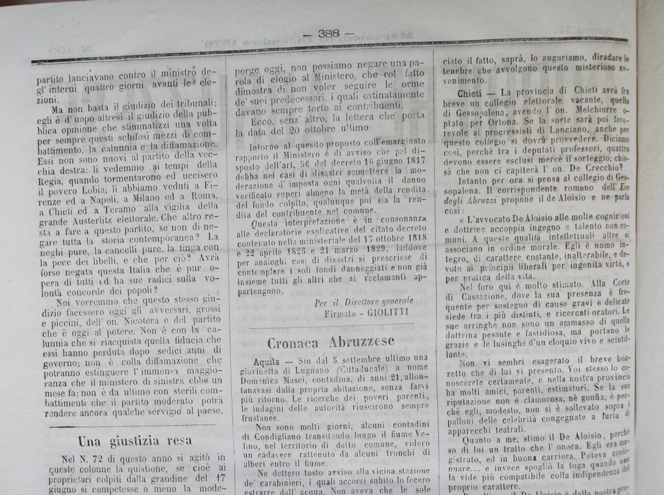 Per ii Direttore generale Firmato - GIOLITTI